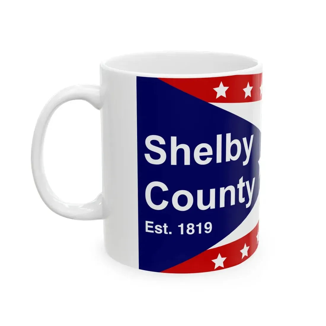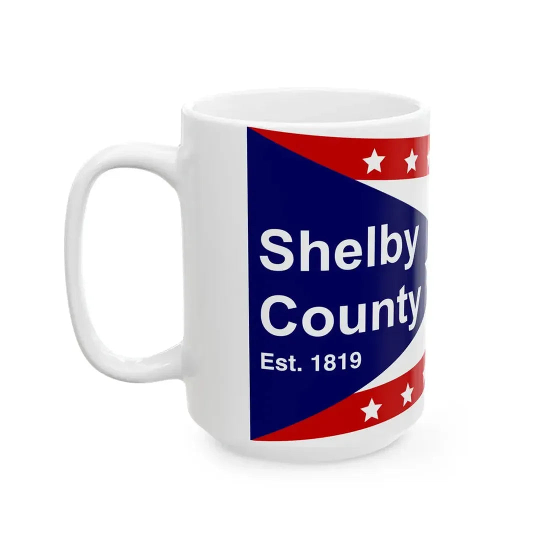 The county flag's depiction on this white coffee mug offers a practical way to display one's pride for Shelby County. The ceramic construction ensures durability while maintaining a sleek, modern aesthetic. Additionally, the white color scheme gives versatility, allowing it to blend seamlessly with various kitchen decors. This mug is more than just a drinkware item; it serves as a conversation starter and a subtle display of one's affiliation with Shelby County, Ohio. Perfect for anyone who appreciates unique and cool drinkware.