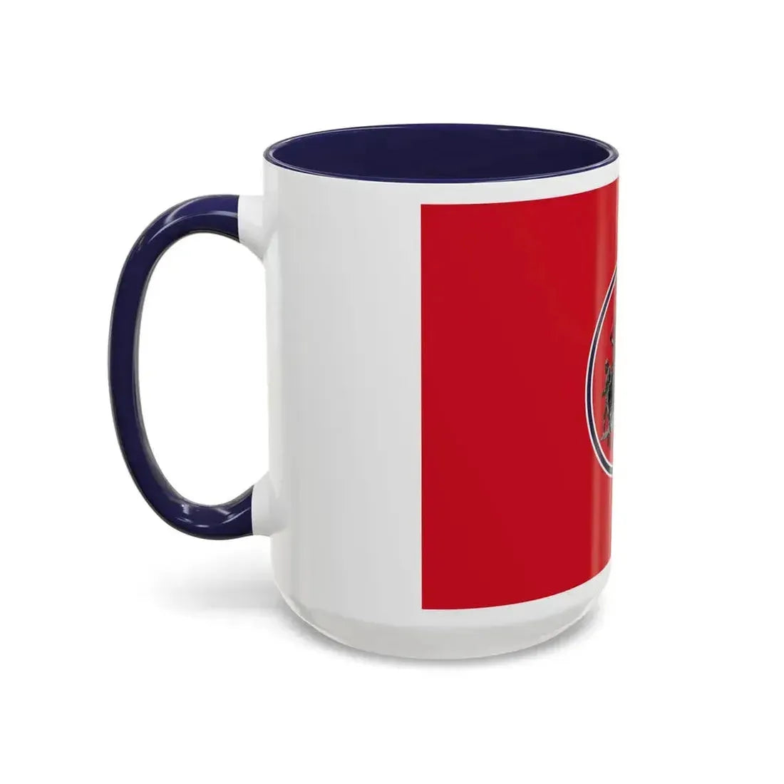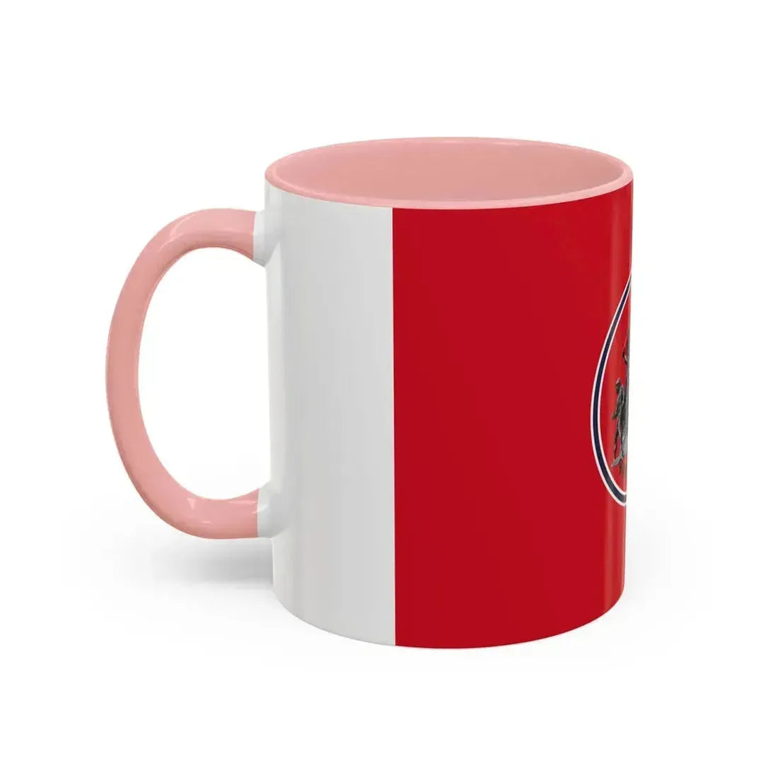 This Accent Coffee Mug showcases an iconic design inspired by the Flag of Sing Buri Province, Thailand. The vibrant flag's motif, adorned on this mug, reflects the region's rich history and cultural heritage. With intricate detailing and careful craftsmanship, each element of the artwork stands out, offering a captivating visual representation of the Sing Buri flag. This unique drinkware is perfect for anyone who appreciates unique and cool drinkware, as well as those with an affinity for Thai culture or travel enthusiasts with connections to Sing Buri Province.