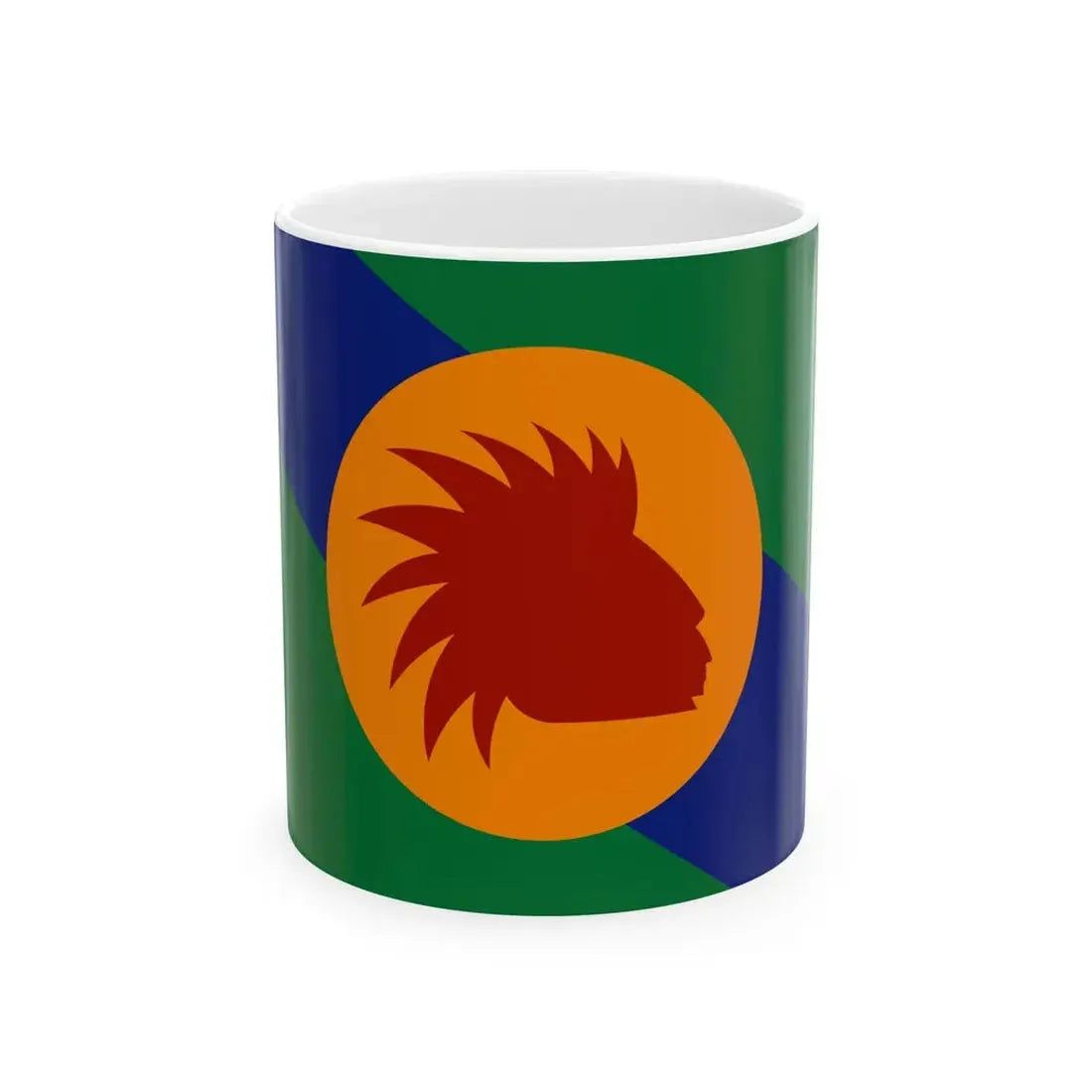 This White Coffee Mug showcases a unique design inspired by the Flag of Spokane County, Washington. The mug features an artistic recreation of the flag's central emblem, a grizzly bear holding a salmon, symbolizing the county's rich natural resources and resilience. The background consists of the red, white, and blue fields of the American flag, reminding drinkers of Spokane County's proud connection to the United States. This mug is perfect for anyone who appreciates unique and cool drinkware, as well as those with a special affinity for the region or American history.