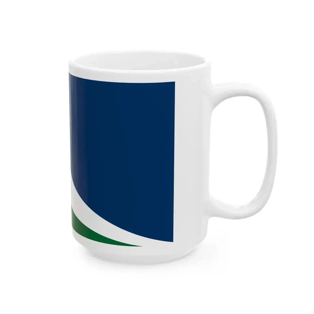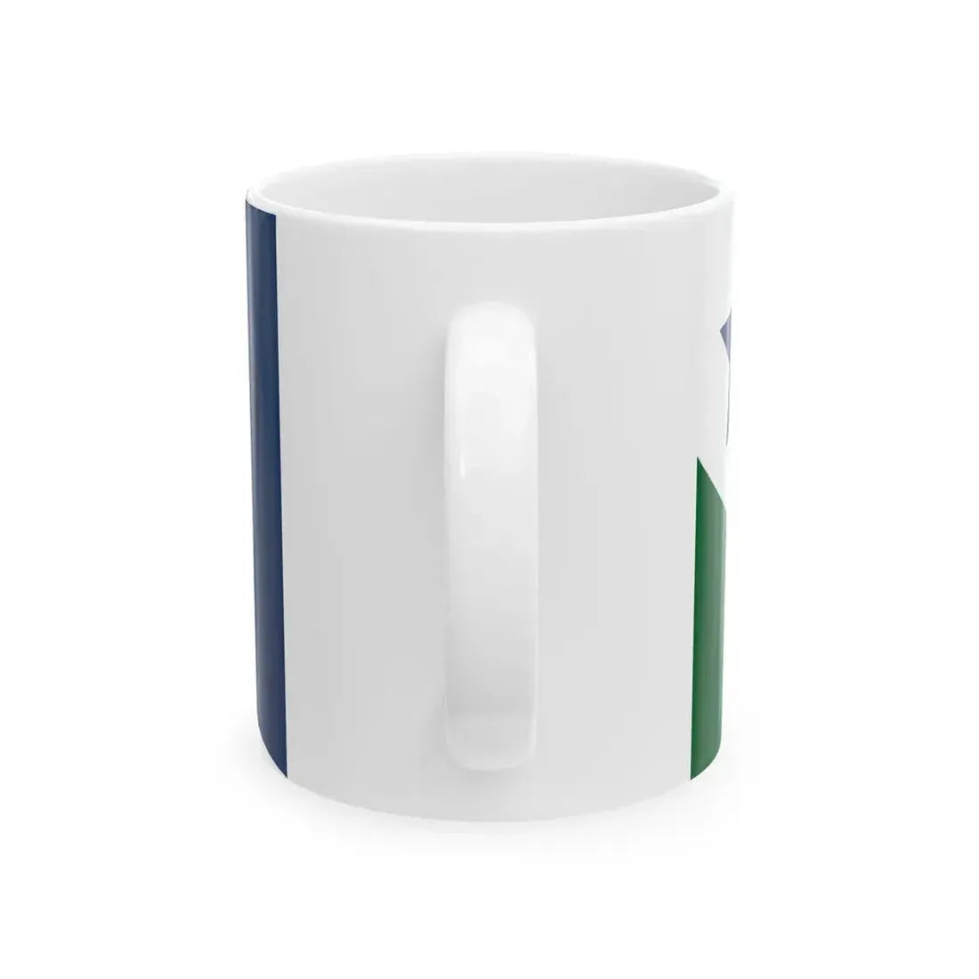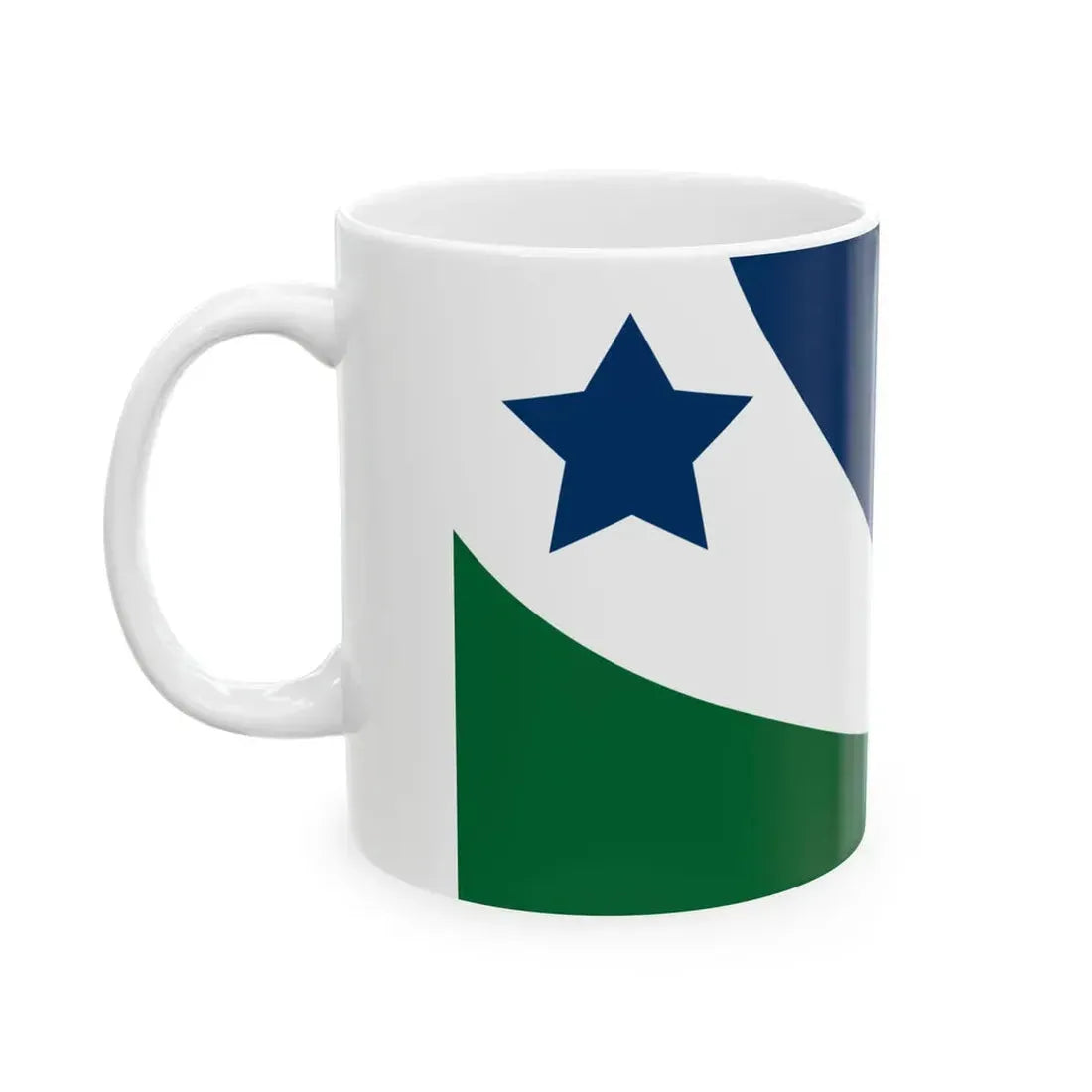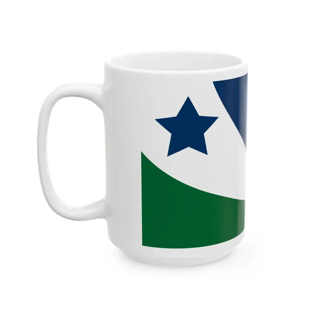 This unique white coffee mug showcases a distinctive design that represents Spring Hill, Tennessee in the United States. The graphic on the mug is modeled after the official flag of the city, which features a blue field with a single, large white star at the center. The star symbolizes the state of Tennessee and embodies the spirit of Spring Hill – a vibrant community that takes pride in its heritage.