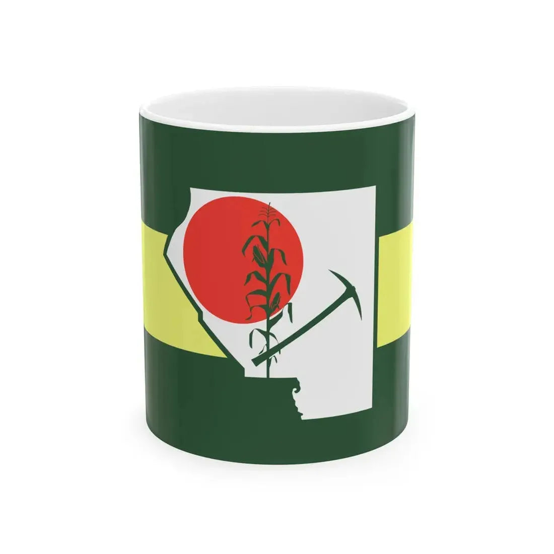 Celebrate your love for St. Clair County, Illinois with this unique white coffee mug featuring the official flag of the county. This mug showcases a striking design that incorporates the red, white, and blue colors of the American flag along with the county's seal. The seal features an eagle clutching arrows and an olive branch, symbolizing peace and strength - values deeply rooted in the history of St. Clair County. This mug for anyone who appreciates unique and cool drinkware, as well as those who hold a special place for Illinois or St. Clair County in their hearts.