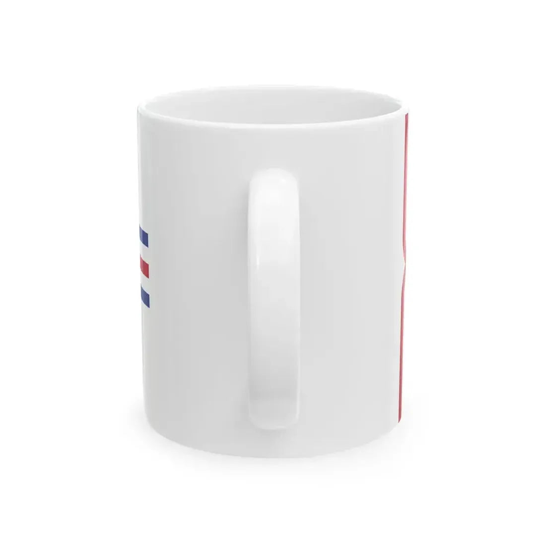 The "Flag of Struthers Ohio 1994-2019" White Coffee Mug showcases a unique piece of local history from the city of Struthers, Ohio, United States. The design on this mug features the official flag used by the city between 1994 and 2019. This flag symbolizes the unity and pride of the community during that era, making it a significant artifact for those with a connection to Struthers or Ohio history enthusiasts. The mug's white background provides a clean canvas for the vibrant colors and intricate details present in the flag design. Perfect for anyone who appreciates unique and cool drinkware, especially those with an affinity for American cities or local history.