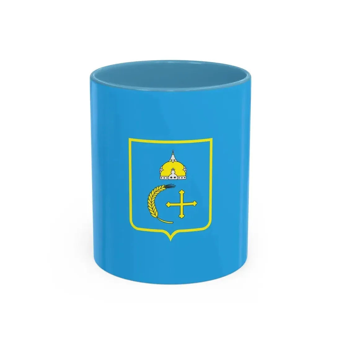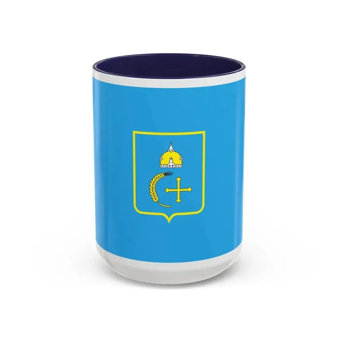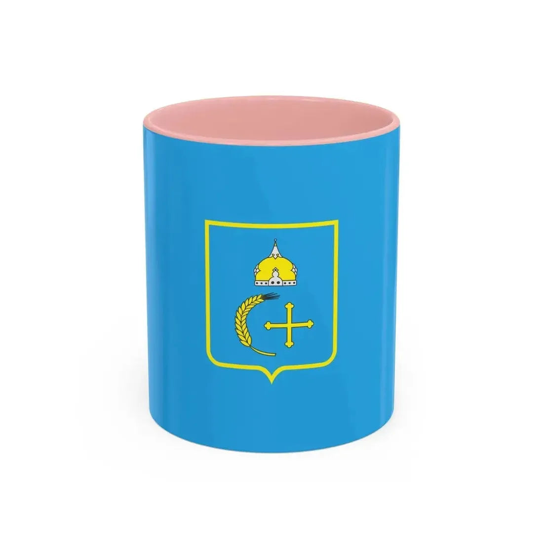 The "Flag of Sumy Oblast Ukraine" Accent Coffee Mug is a unique piece of drinkware that showcases the beautiful and symbolic flag of the Sumy region in Ukraine. This exquisite design features the blue field adorned with the golden trident, an emblem deeply rooted in Ukrainian history and culture. The intricate details and vibrant colors of the artwork on this mug capture the essence of the flag's patriotic spirit, making it a perfect addition to any coffee enthusiast's collection. Ideal for those who appreciate unique and cool drinkware as well as anyone with an affinity for Ukrainian history or culture.