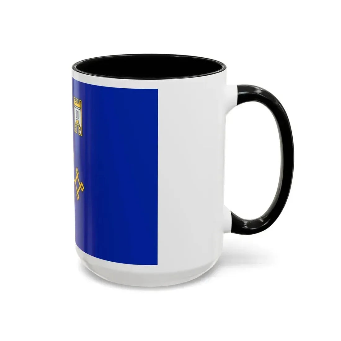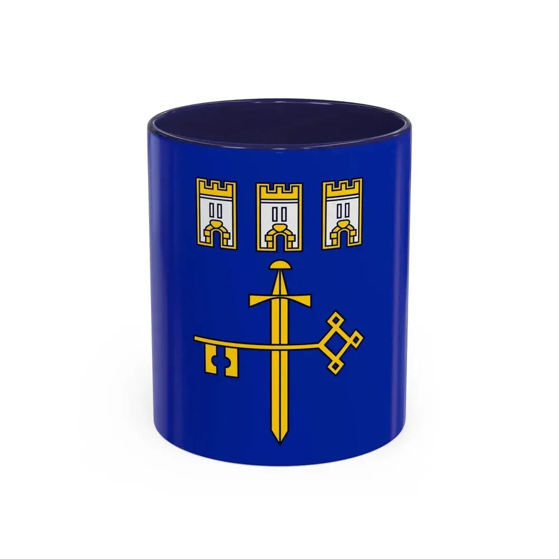 Experience a piece of Eastern European culture with every sip from this Flag of Ternopil Oblast Ukraine Accent Coffee Mug. This unique drinkware showcases the design of the flag representing Ternopil Oblast, one of the 24 administrative divisions of Ukraine. The flag's deep blue field adorned with a golden trident symbolizes the region's historical connection to the Ukrainian state. Ideal for anyone who appreciates unique and cool drinkware, this coffee mug makes an excellent gift for history enthusiasts or those passionate about Ukrainian culture.