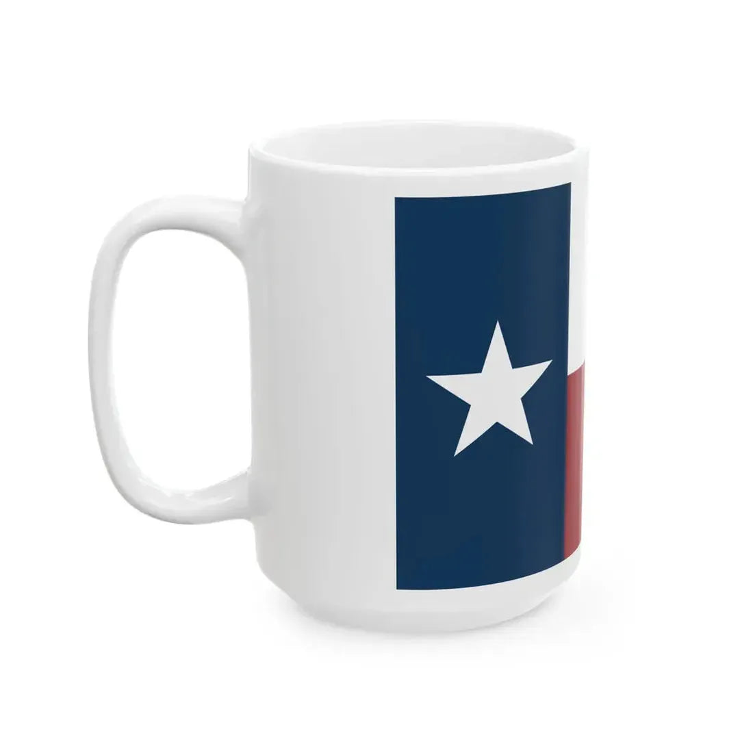 The "Flag of Texas 1839-1879" design on this white coffee mug serves as a historical reminder of the Lone Star Republic's independent flag during that period. This flag, with its single star on a field of blue, against a background of five vertical stripes - three red and two white - symbolizes Texas' struggle for independence and its eventual annexation by the United States. The design is a testament to the spirit of self-determination and resilience that has long characterized Texas culture. History enthusiasts, particularly those with an interest in Texas or American history, will find this mug not only practical but also rich in symbolism.