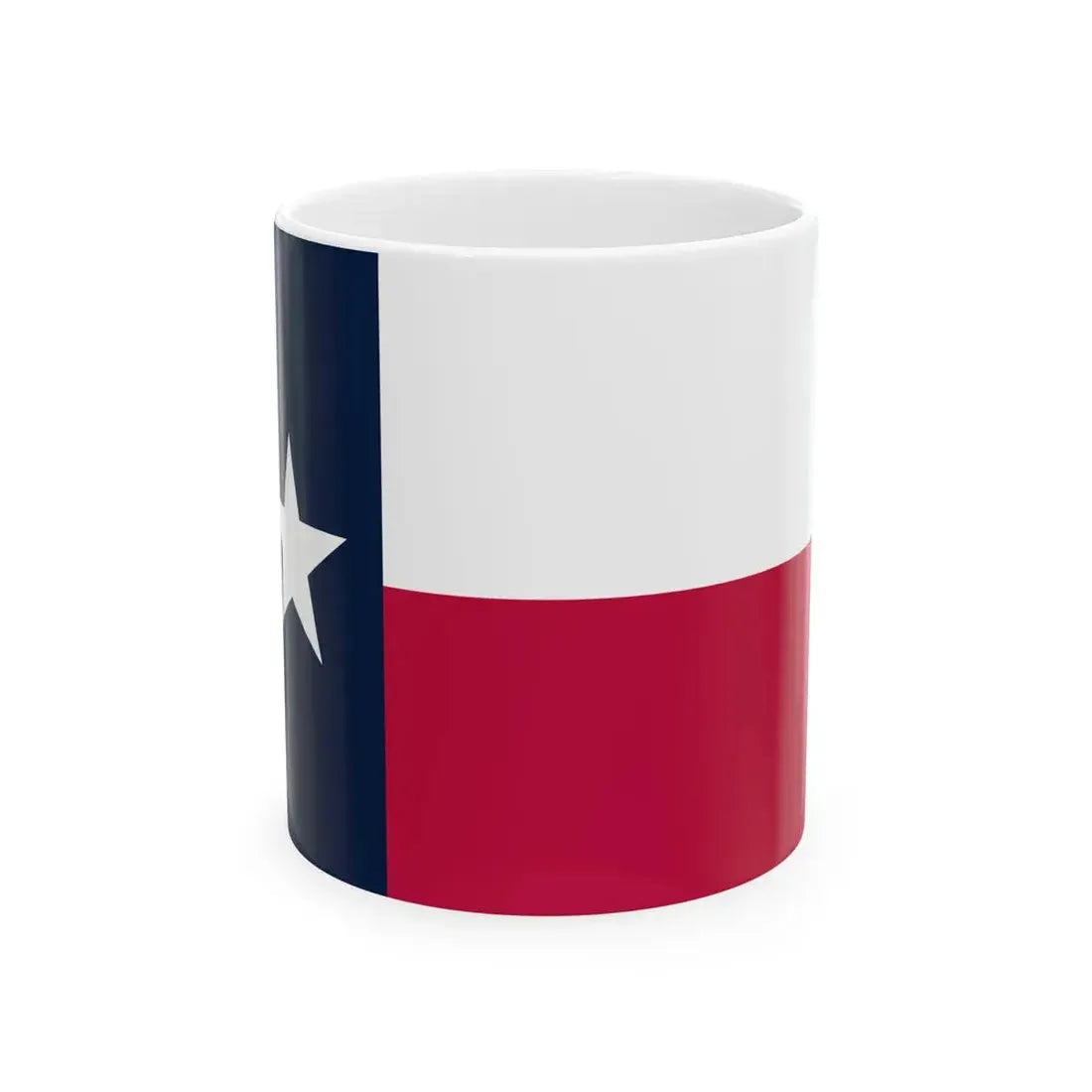 Experience the essence of Texas with this unique coffee mug featuring the official Flag of Texas as per the Department of State's ECA Color Standard Pantone (United States) in white. This design is a tribute to the Lone Star State, making it an excellent choice for Texans or anyone who appreciates American symbolism. The flag's iconic blue field with a single, white five-pointed star on a red canton stands out against the mug's plain white background, creating a striking visual that adds a touch of Texas pride to your morning coffee ritual.