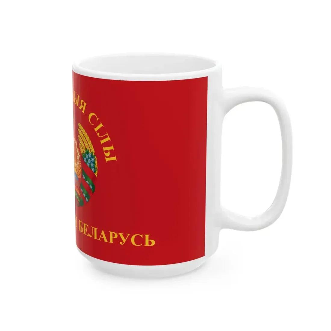 The Flag of the Armed Forces of Belarus mug is a practical addition to any kitchen or office space, making it ideal for daily use. Crafted from materials, this ceramic mug holds 12 oz of your favorite beverage and is dishwasher safe for easy cleaning. Whether you're sipping your morning coffee or enjoying an afternoon tea, this mug offers a touch of history and patriotism to your daily routine. Embrace the spirit of Belarus with every sip.