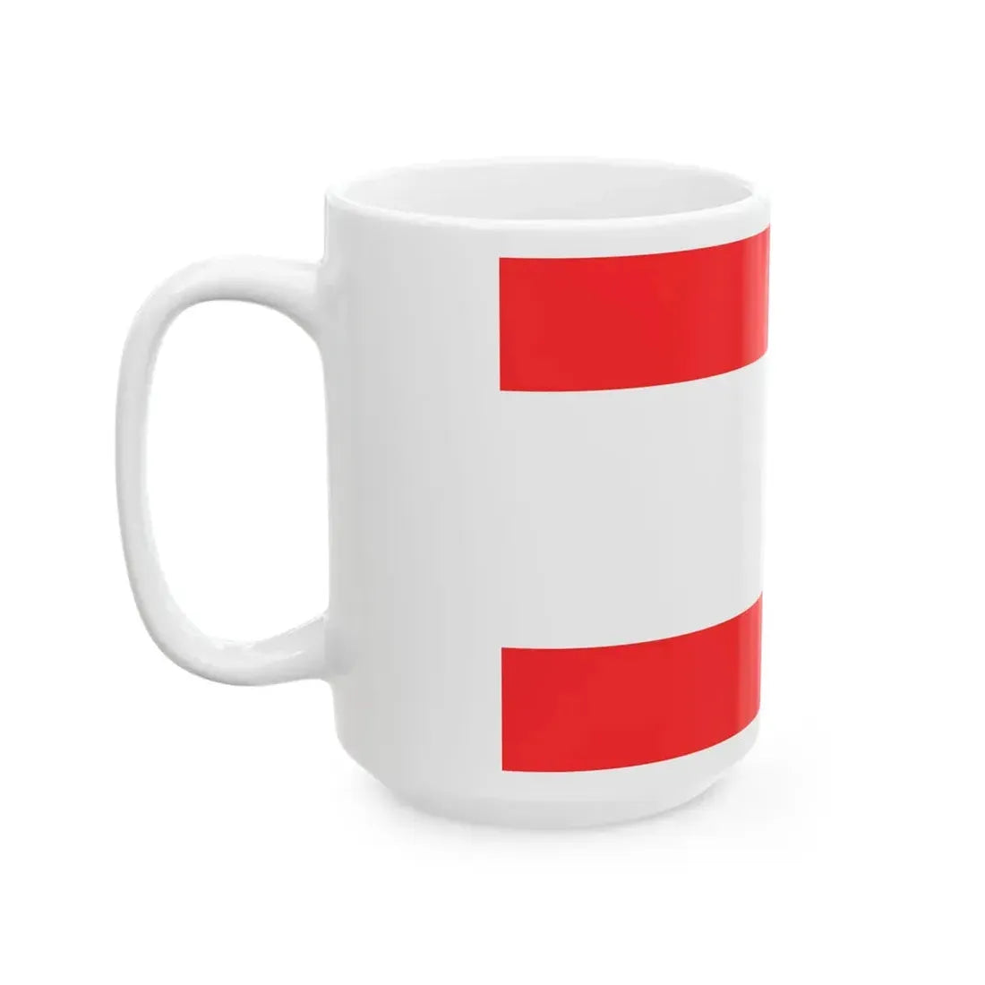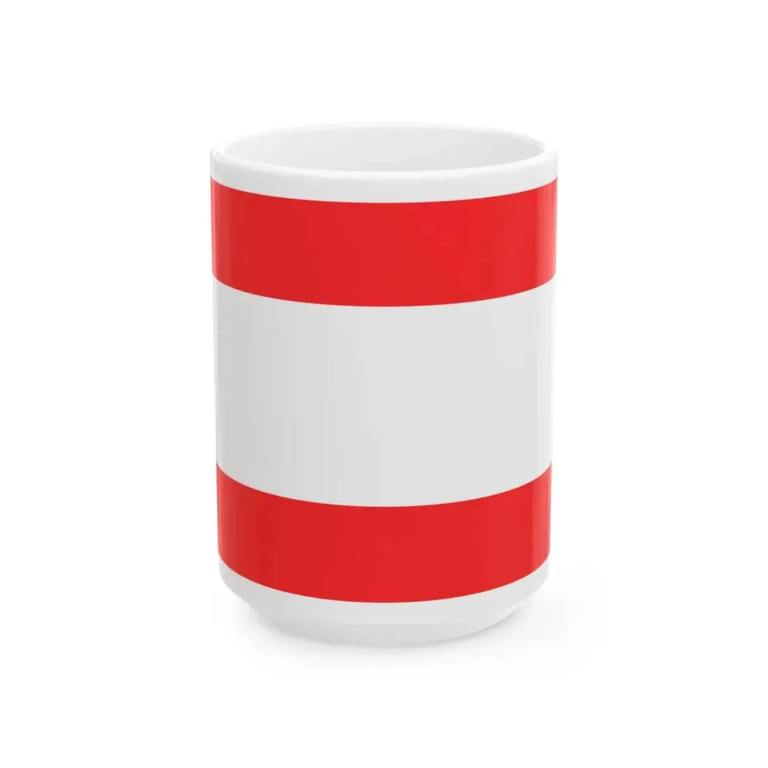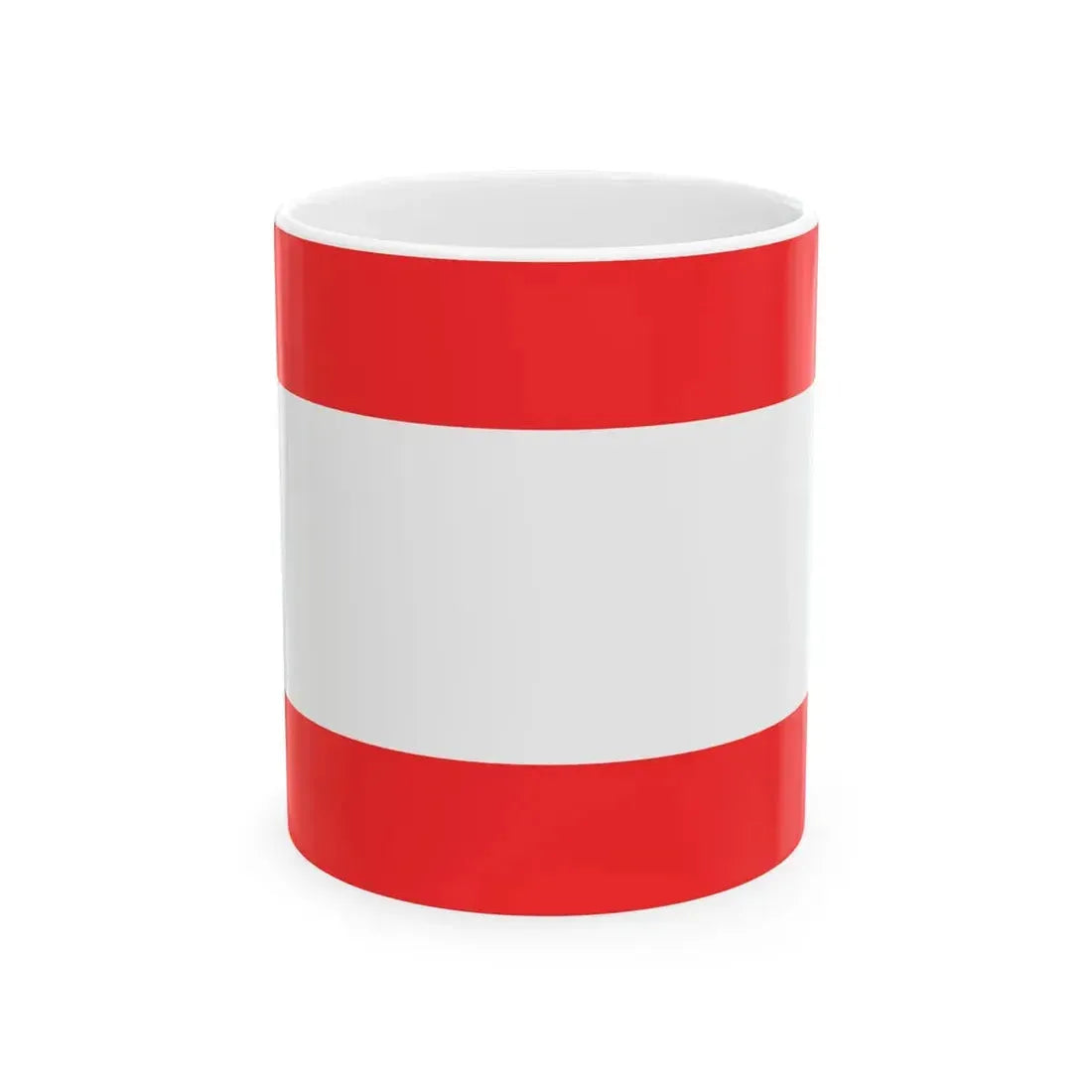 Sturdy white ceramic mugs available in 11 oz (≈330 ml) and 15 oz (≈440 ml), with a glossy finish and comfortable C-handle — microwave and dishwasher safe, and made from lead- and BPA-free materials.