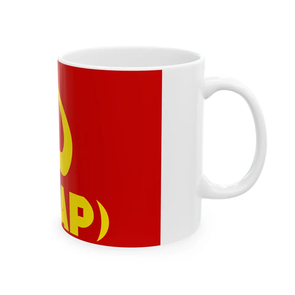 This White Coffee Mug features the design of the Flag of the Chilean Communist Party Proletarian Action, providing a unique and thought-provoking addition to your collection. The flag, which includes a red star, hammer and sickle, and various symbols representative of the working class, serves as a reminder of communist movements in Chile and beyond. This mug is perfect for anyone who appreciates unique and cool drinkware, as well as those with an interest in political history and symbolism.