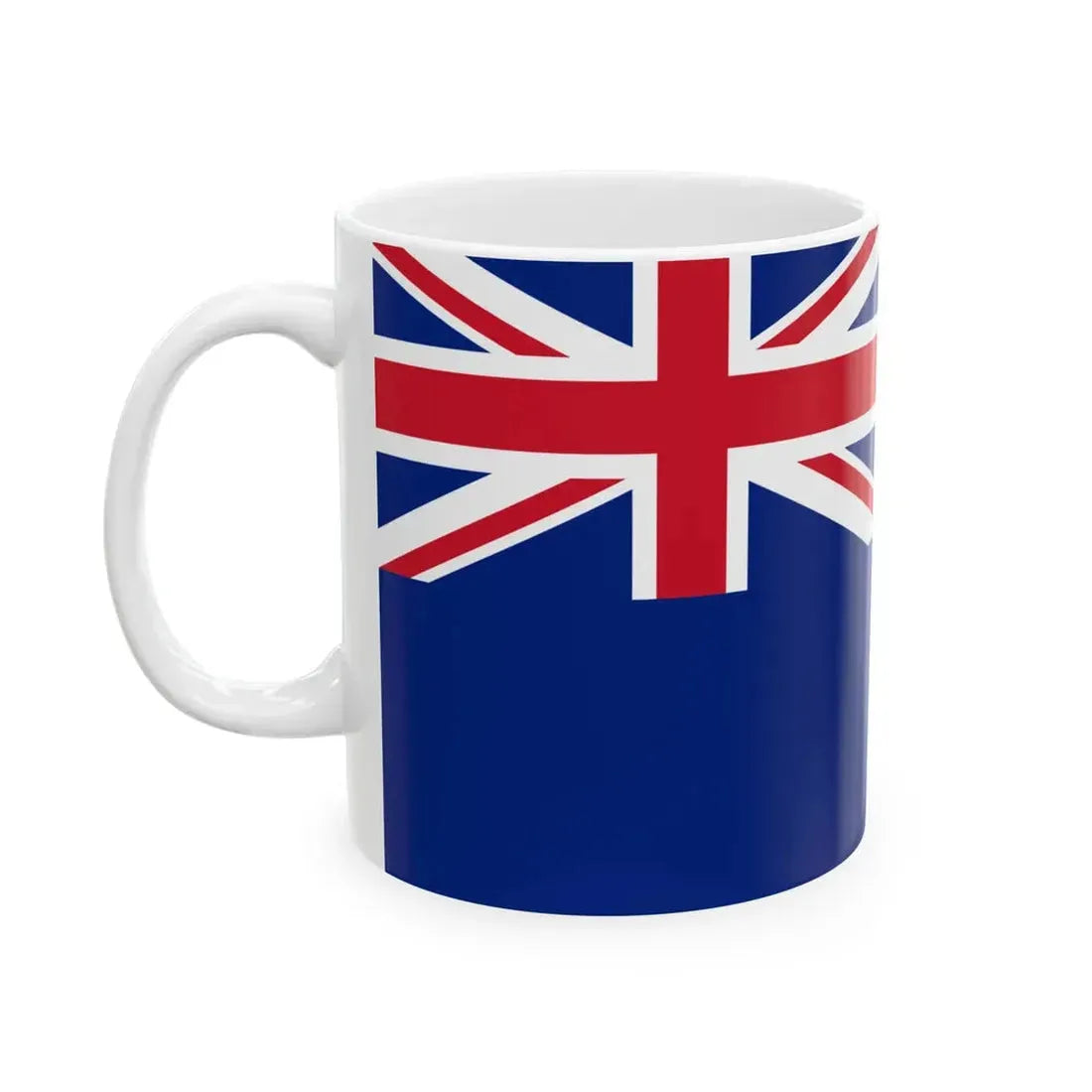 This white coffee mug showcases a design that pays homage to the historic Flag of the Colony of British Columbia. The flag's unique emblem, featuring a beaver working in a trench and flanked by three royal lion rampants, is prominently displayed on this practical drinkware item. It serves as an engaging conversation starter for history enthusiasts, Canadiana collectors, or anyone with a fondness for the intriguing past of British Columbia. Perfect for anyone who appreciates unique and cool drinkware.