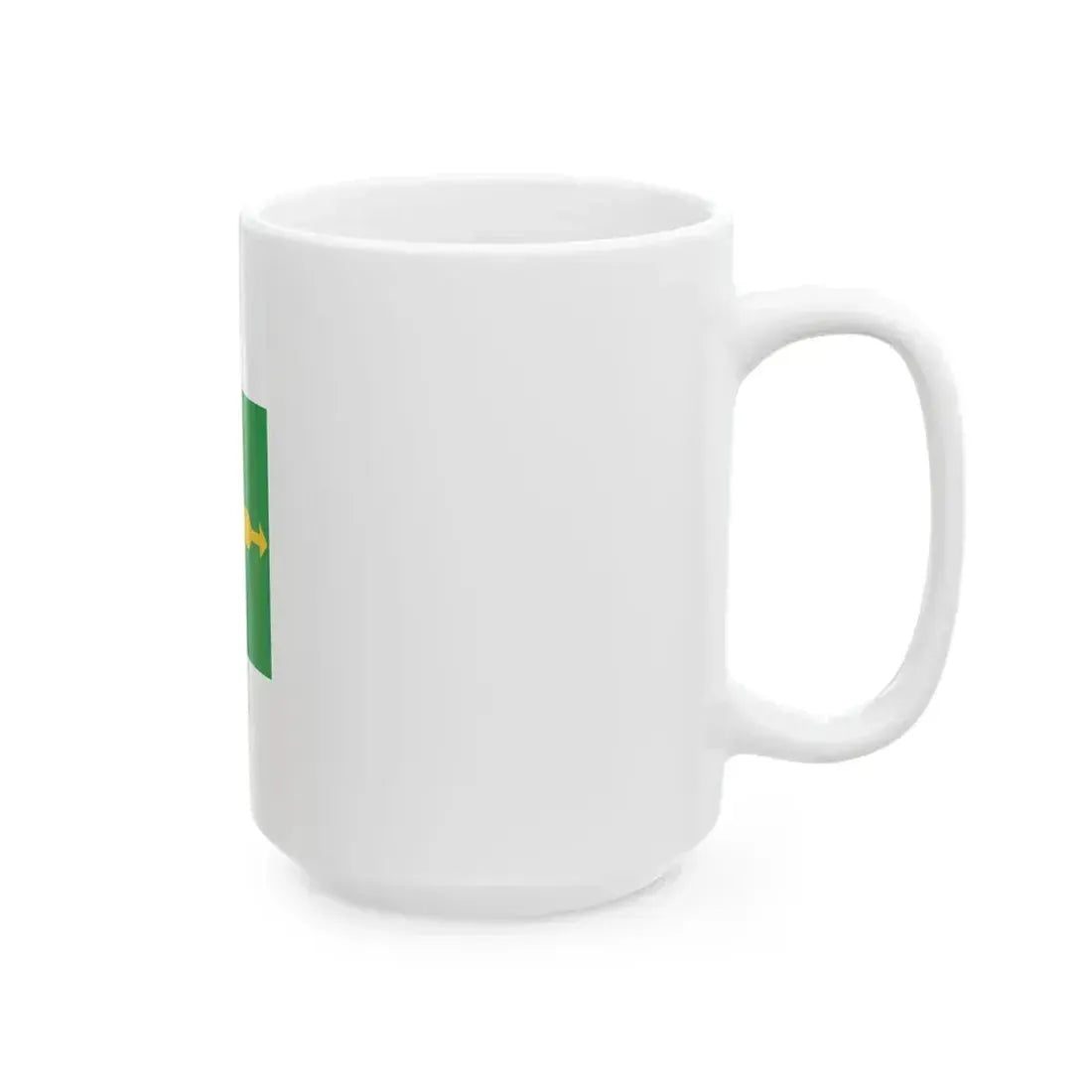 This unique white coffee mug showcases an artistic representation of the Flag of the Federal District in Brazil. The design beautifully captures the distinct emblem that symbolizes Brasília, the country's capital city. On one side, the yellow circle with a white five-pointed star is vividly displayed, representing the federal district. Opposite it, the green field of the flag, divided by two thin horizontal blue stripes, adds a touch of Brazil's national colors. This mug serves as an excellent conversation starter for anyone interested in Brazilian culture or geography, making it perfect for anyone who appreciates unique and cool drinkware.