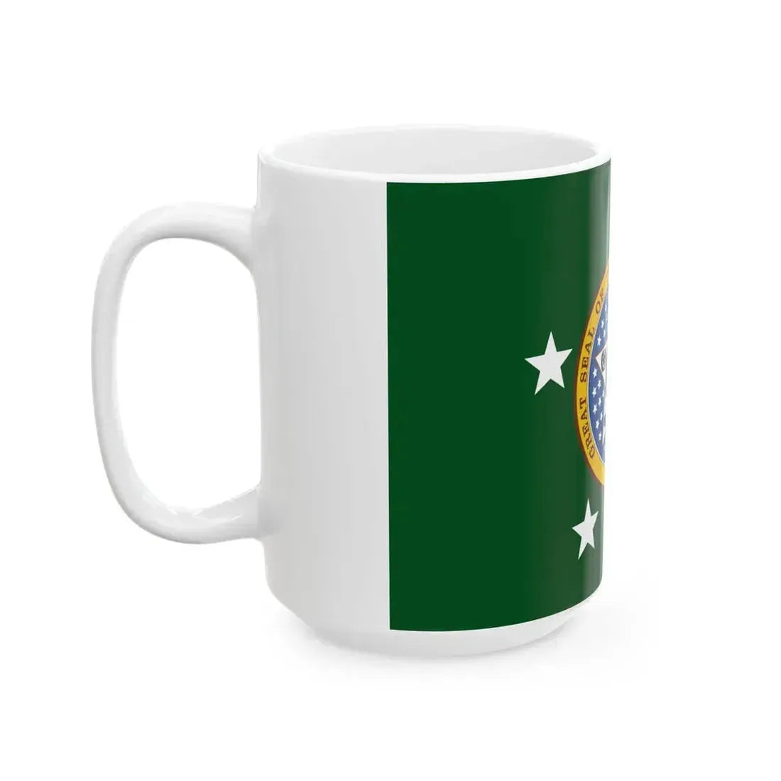 This White Coffee Mug showcases a unique design inspired by the Flag of the Governor of Oklahoma, United States. The mug proudly presents the state's emblematic seal, a symbol of the executive branch in Oklahoma, on its pristine white body. The seal features a shield, adorned with the state's flora and fauna, and a banner bearing the state motto, "Labor Omnia Vincit," which translates to "Work Conquers All." History enthusiasts and Oklahoma residents will appreciate this mug as a thoughtful nod to the state's governance and heritage. Perfect for anyone who appreciates unique and cool drinkware.