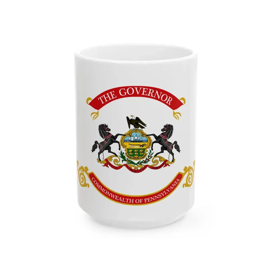 This White Coffee Mug showcases a unique design that celebrates one of the most iconic symbols of American history - the Flag of the Governor of Pennsylvania. The mug features an intricate reproduction of this historical artwork, capturing the attention of anyone who values historical artifacts and appreciates their significance in shaping our nation's past. This mug serves as a perfect conversation starter for history enthusiasts, civic-minded individuals, or anyone who takes pride in the rich heritage that America offers.