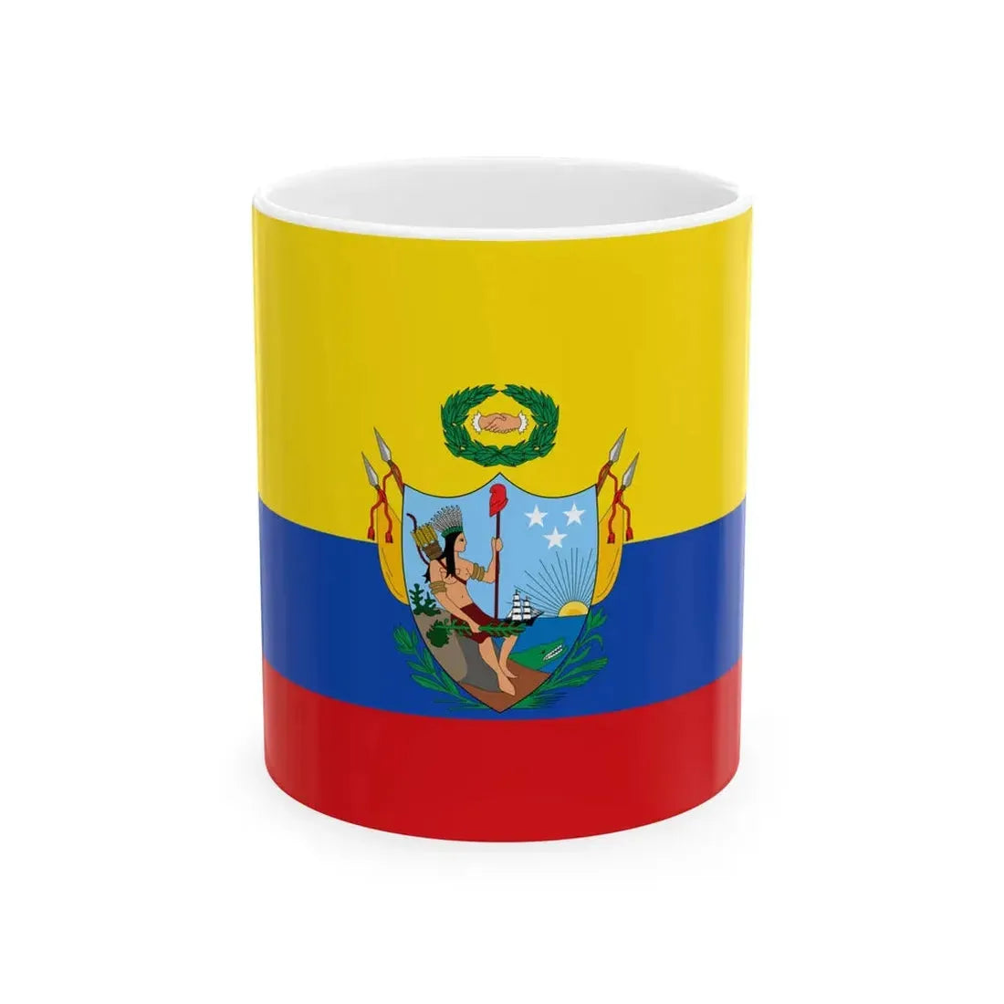 By owning this white coffee mug adorned with the Flag of Gran Colombia, you can commemorate a significant era in Colombian history while enjoying your favorite beverage. This distinctive design will surely spark conversations and inspire curiosity about Colombia's fascinating past. So lift your coffee mug high, honor the spirit of Gran Colombia, and indulge in an invigorating brew steeped in history.