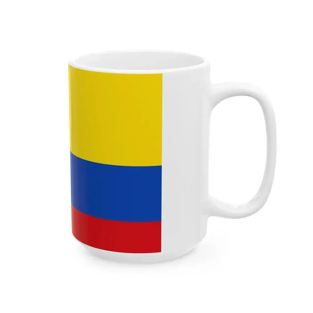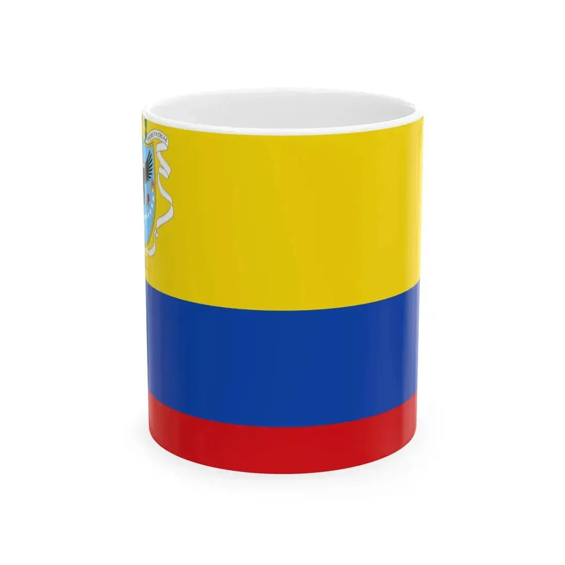 This White Coffee Mug features the design of the Flag of Gran Colombia from the years 1820-1821. This flag represents a significant moment in Colombian history, as it was during this period that Gran Colombia, which also included modern-day Venezuela and Ecuador, was established. The flag's design consists of three horizontal stripes in the colors yellow, blue, and red, with the coat of arms positioned in the center. This design is a symbol of unity, independence, and courage, making this mug an excellent choice for history enthusiasts, particularly those interested in Colombian or South American history.