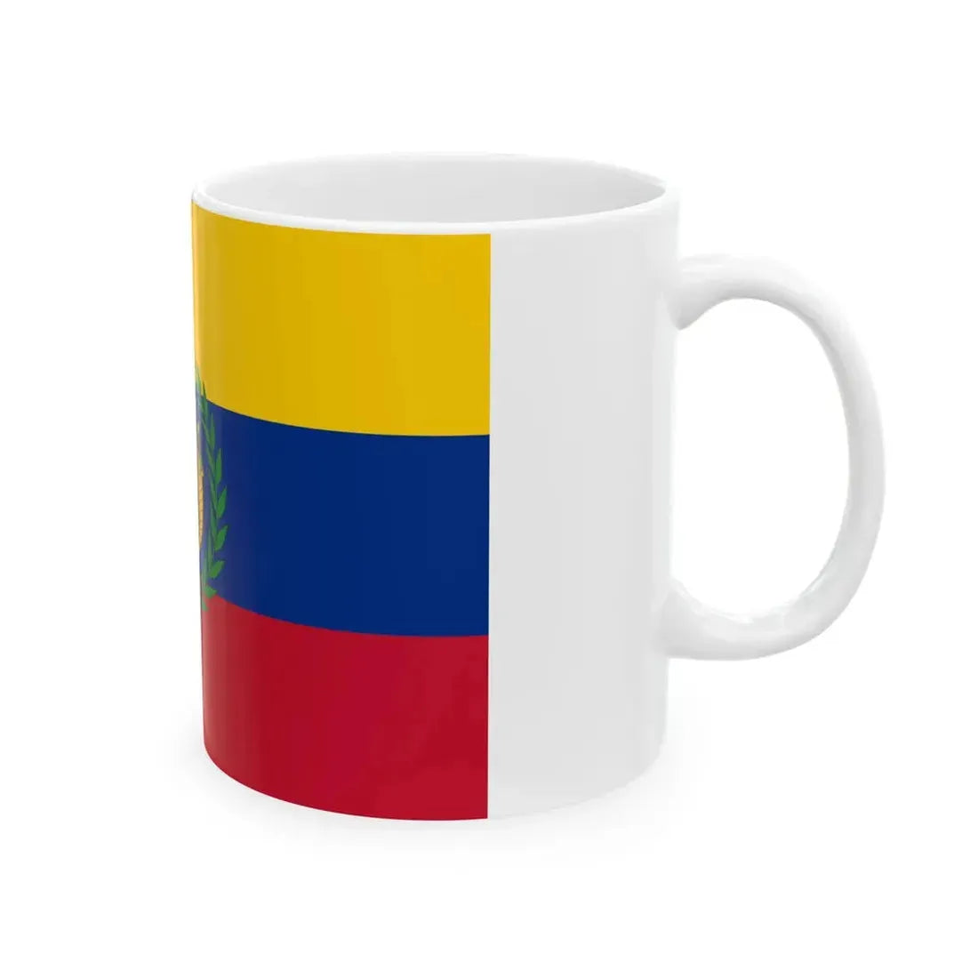 This white coffee mug showcases the Flag of Gran Colombia from the years 1821-1830, specifically with a unique recolor. The flag represents the first constitutionally independent Colombian nation, which encompassed what are now Colombia, Panama, Venezuela, Ecuador, and parts of Peru and Guyana. The design features horizontal stripes in three colors - yellow, blue, and red - symbolizing liberty, justice, and courage. For history enthusiasts or anyone with a connection to Colombia, this mug serves as a vibrant and meaningful accessory for daily use.