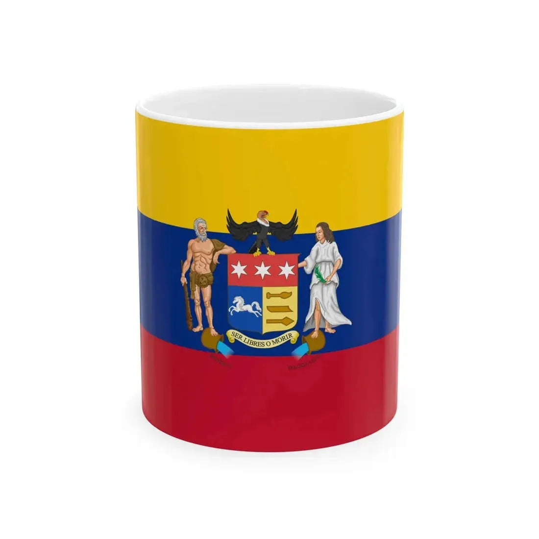 This White Coffee Mug showcases a design that commemorates the Flag of Gran Colombia proposed in 1822, reflecting the rich historical roots of modern-day Colombia. The flag's vibrant colors - yellow, blue, and red - symbolize liberty, justice, and unity, key values during the struggle for independence from Spanish rule. The eagle at the center, a powerful symbol, represents the strength and courage of the nation. History enthusiasts, Colombian expatriates, or anyone interested in South American history will appreciate this unique and educational drinkware.