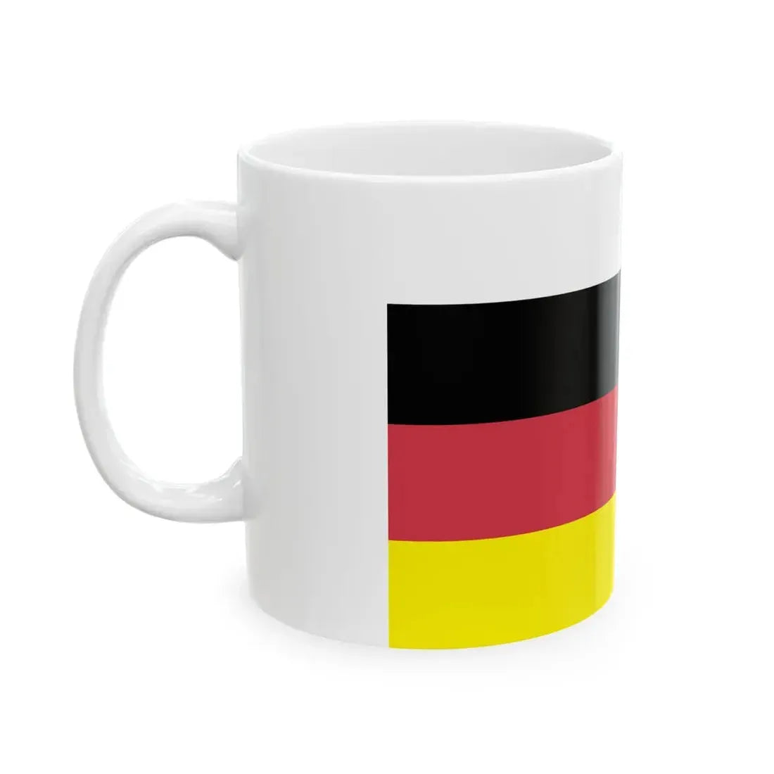 Sturdy white ceramic mugs available in 11 oz (≈330 ml) and 15 oz (≈440 ml), with a glossy finish and comfortable C-handle — microwave and dishwasher safe, and made from lead- and BPA-free materials.