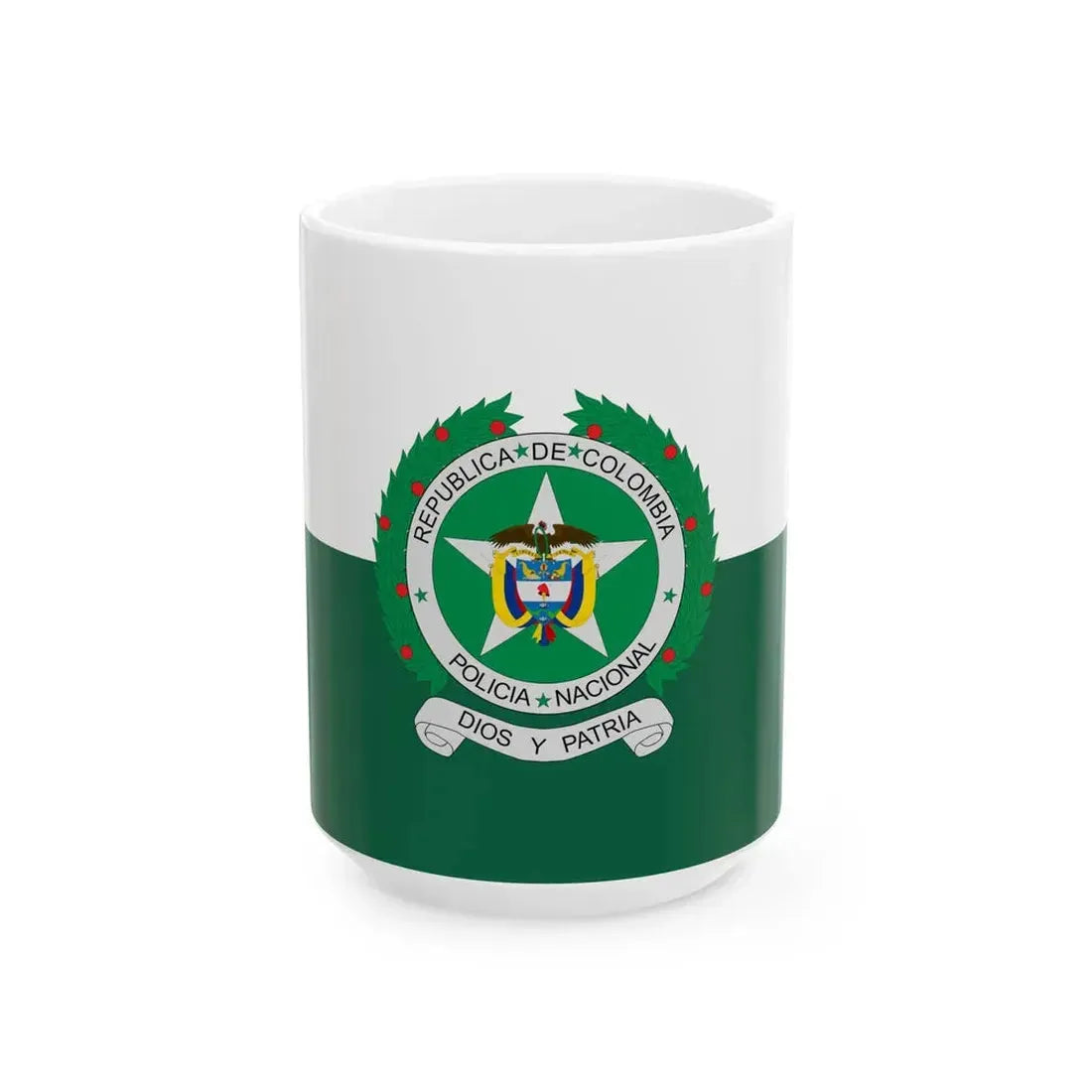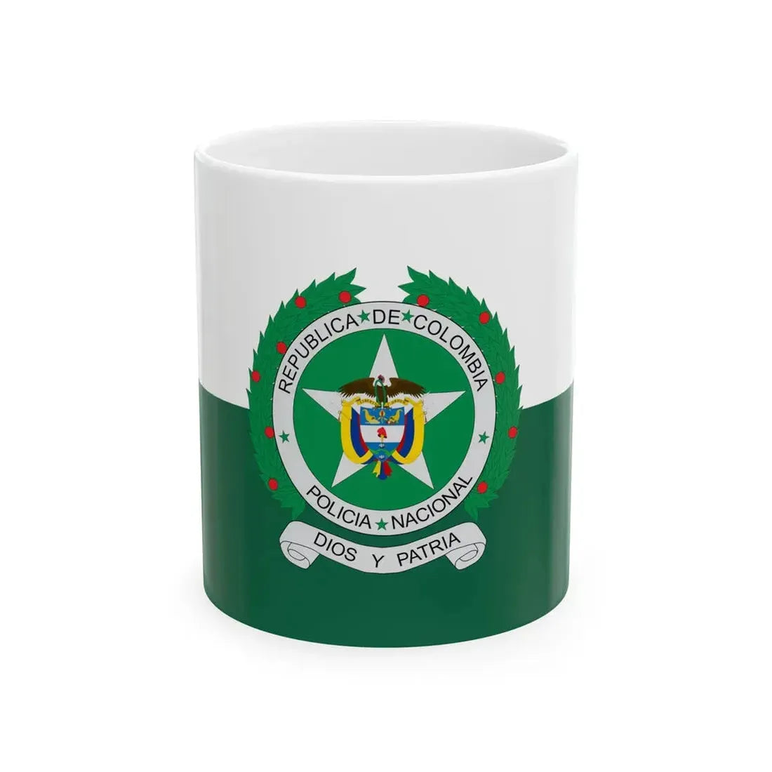 This white coffee mug showcases an exquisite design inspired by the Flag of the National Police of Colombia. The artwork on this mug features the Colombian police emblem against a white background, symbolizing the unwavering dedication and service of the Colombian law enforcement. This unique drinkware is a perfect tribute to the brave men and women who protect Colombia's citizens, making it an exceptional choice for anyone with affection for Colombian culture or admiration for the Colombian National Police.