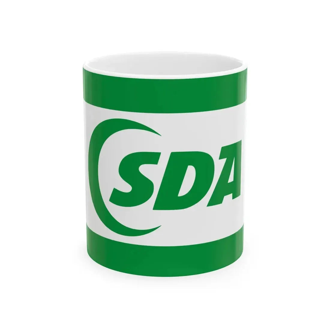 The Flag of the Party of Democratic Action 1996 mug is a unique coffee drinkware piece that commemorates a significant event in the political history of Bosnia and Herzegovina. The design on this white ceramic mug showcases the flag of the Party of Democratic Action, which was adopted in 1996. This party played a crucial role during the country's transition from conflict to democracy. This mug serves as a tangible symbol of that history and makes for an excellent addition to any collection or conversation piece in homes, offices, or cafes.