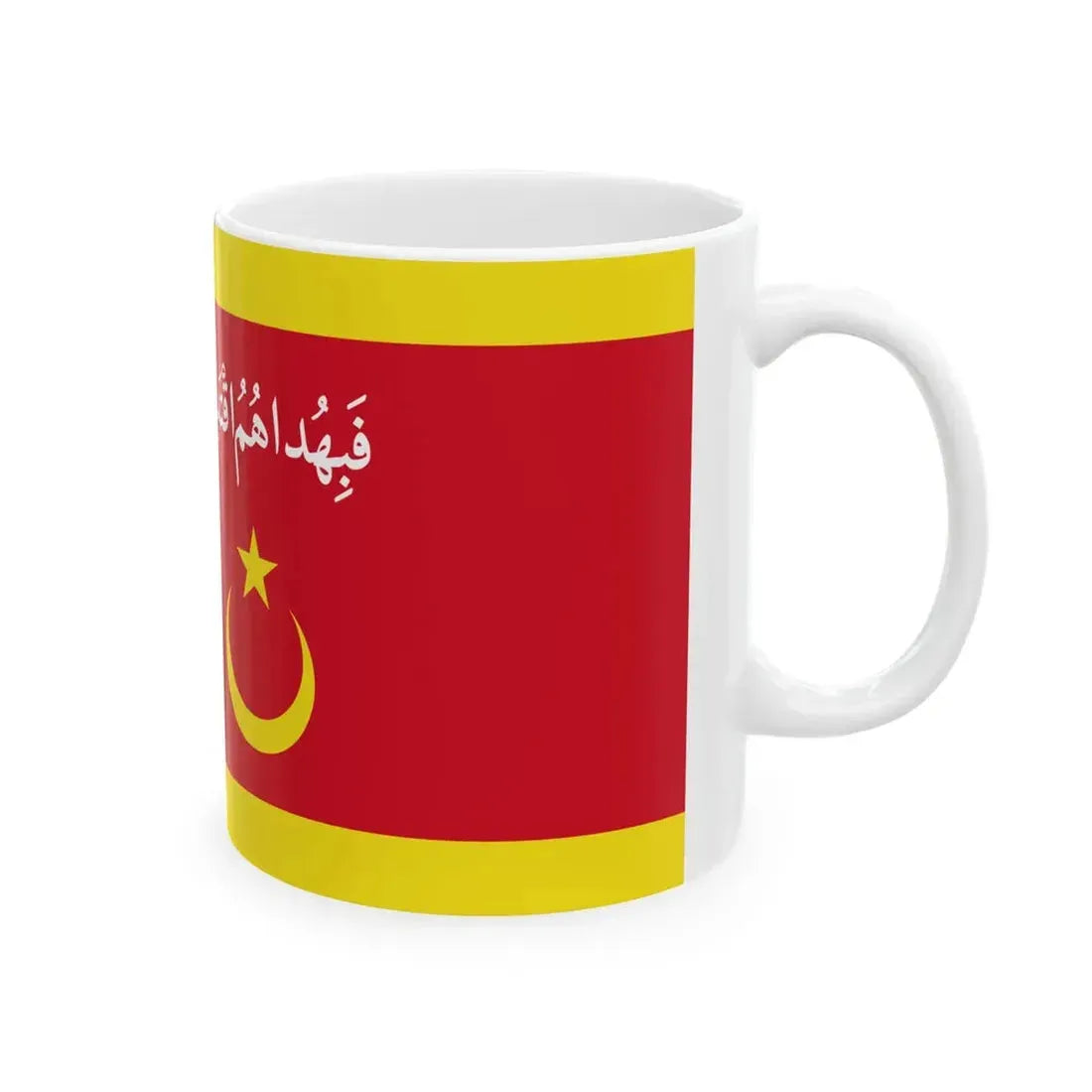 Experience a taste of Brunei's rich culture with this Flag of the Pehin Datu Seri Maharaja (Brunei) White Coffee Mug. The mug showcases an intricate design inspired by the country's national flag, a symbol of unity and strength. The central emblem, a five-pointed white star on a red canton, stands proudly against a background of yellow and black horizontal stripes. This ceramic mug makes a for travelers, history enthusiasts, or anyone with an interest in Southeast Asian culture.