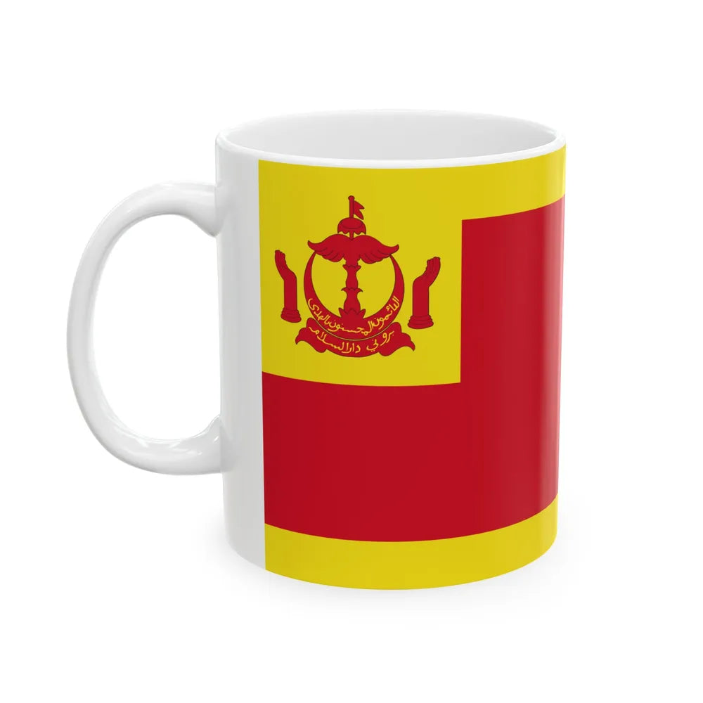 This White Coffee Mug showcases a captivating design inspired by the Flag of the Pehin Siraja Khatib, a symbol of Brunei's rich history and culture. The mug features the iconic emblem of Brunei Darussalam, with its distinctive wavy borders, royal crown, and four stars, all beautifully rendered in vivid detail. This mug is perfect for anyone who appreciates unique and cool drinkware and has an affinity for Bruneian artistry or a connection to the region.