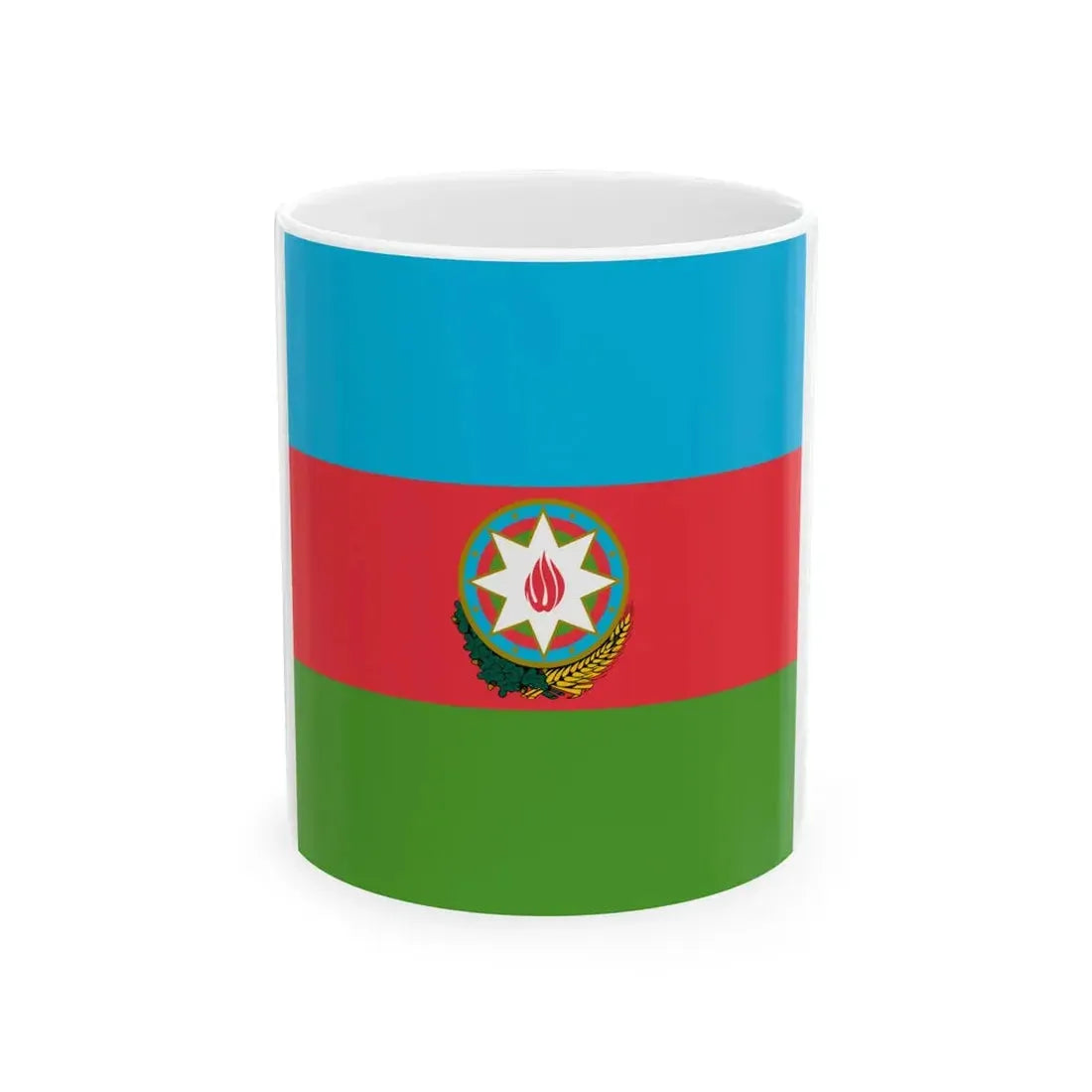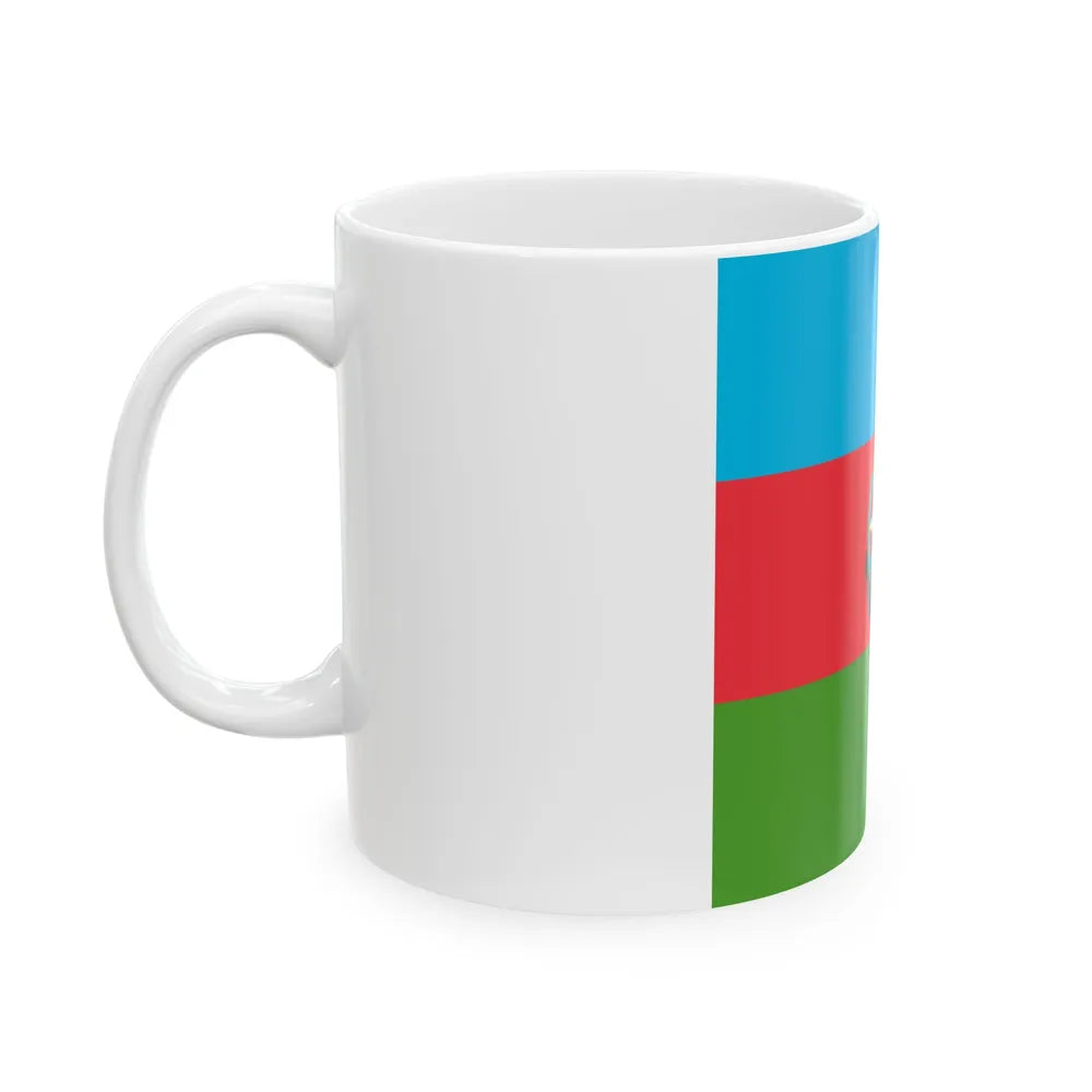 This White Coffee Mug showcases a unique design inspired by the Flag of the President of Azerbaijan. The mug features the official colors and emblem of the presidential flag, symbolizing the rich history and culture of this fascinating country. Ideal for those with an appreciation for world politics or admirers of Azerbaijani art and symbols, this mug is a perfect conversation starter at any gathering.