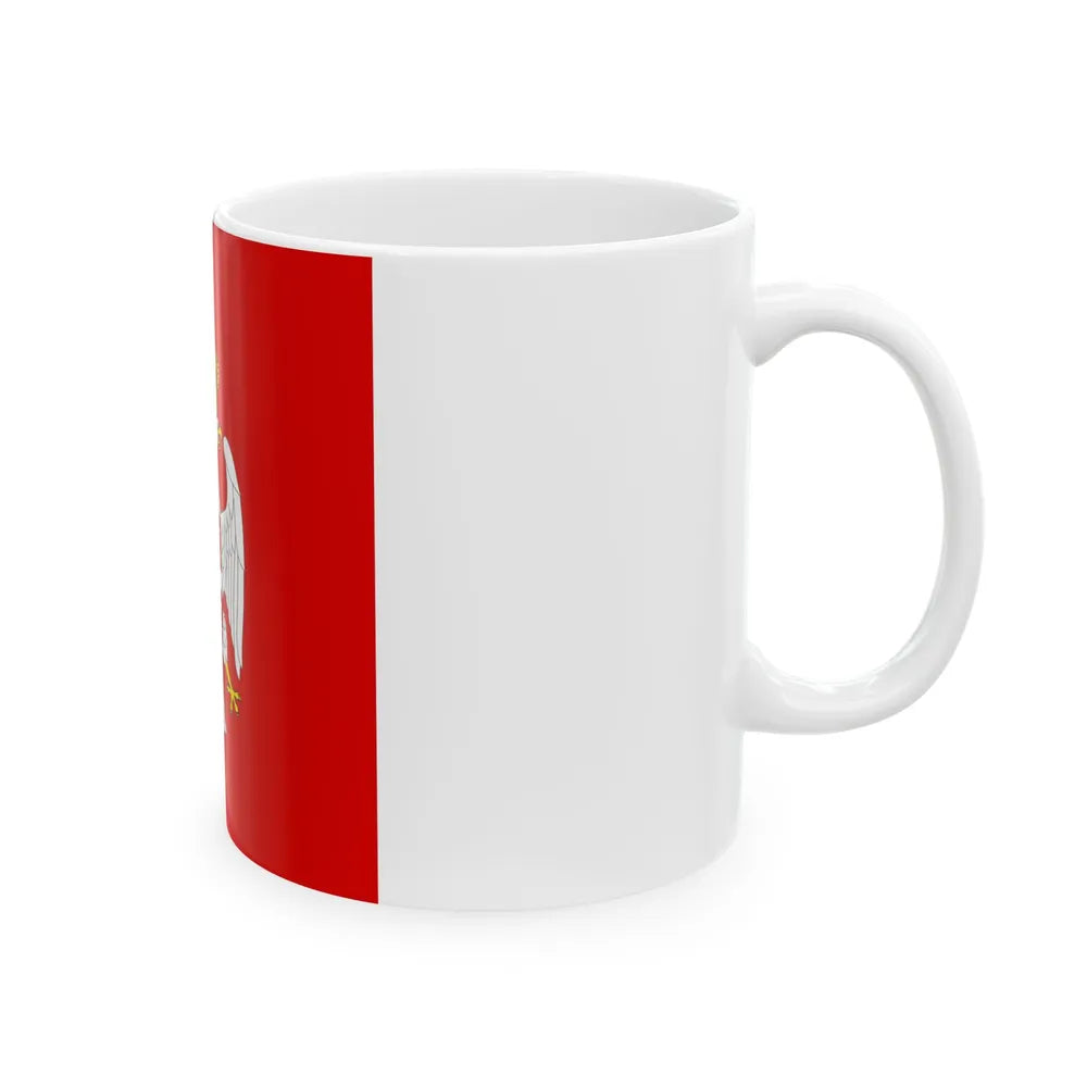 This White Coffee Mug showcases a design that captures an important historical artifact โ€“ the Flag of the President of Republika Srpska from 1995 to 2007, a region in Bosnia and Herzegovina. The flag features a red field with the coat of arms centrally positioned, which includes three interconnected golden six-pointed stars, symbolizing the three constituent peoples of Republika Srpska: Serbs, Croats, and Bosniaks. This mug is perfect for anyone who appreciates unique and cool drinkware and has a keen interest in historical artifacts or Balkan history.
