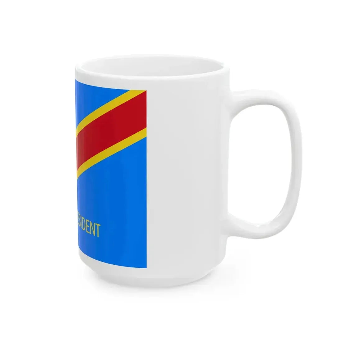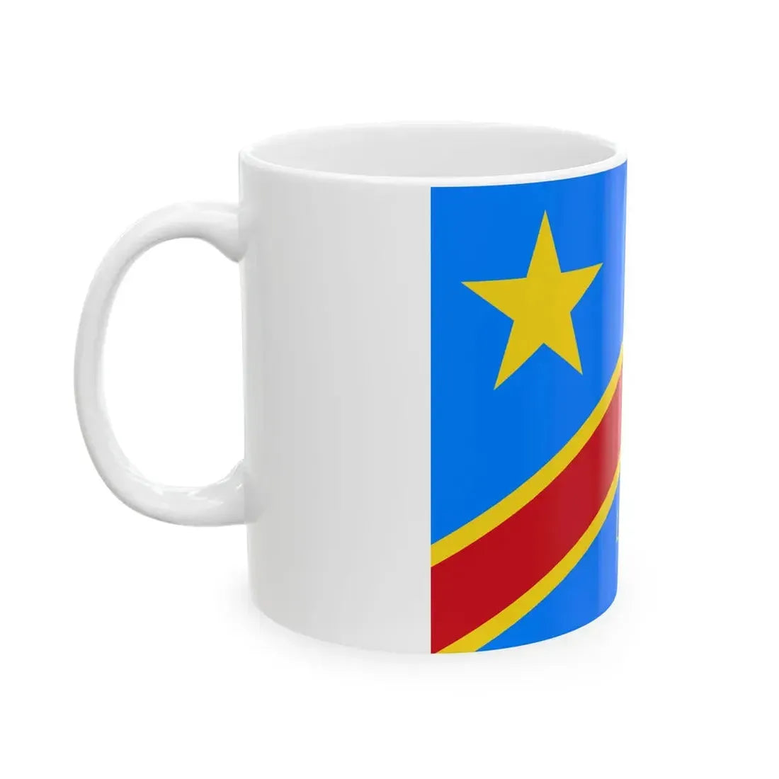This white coffee mug showcases an intricate design inspired by the flag of the Democratic Republic of the Congo (Congo). The flag's vertical tricolor bands of red, yellow, and blue are artfully represented on the mug, symbolizing the African nation's unity, natural resources, and idealism. Embellishing the central emblem is an image of a five-star white ring within a black circle, representing the five provinces of Congo. Whether you're a history enthusiast, a collector of global artifacts, or simply appreciate unique drinkware that tells a story, this mug makes for an engaging addition to your collection.