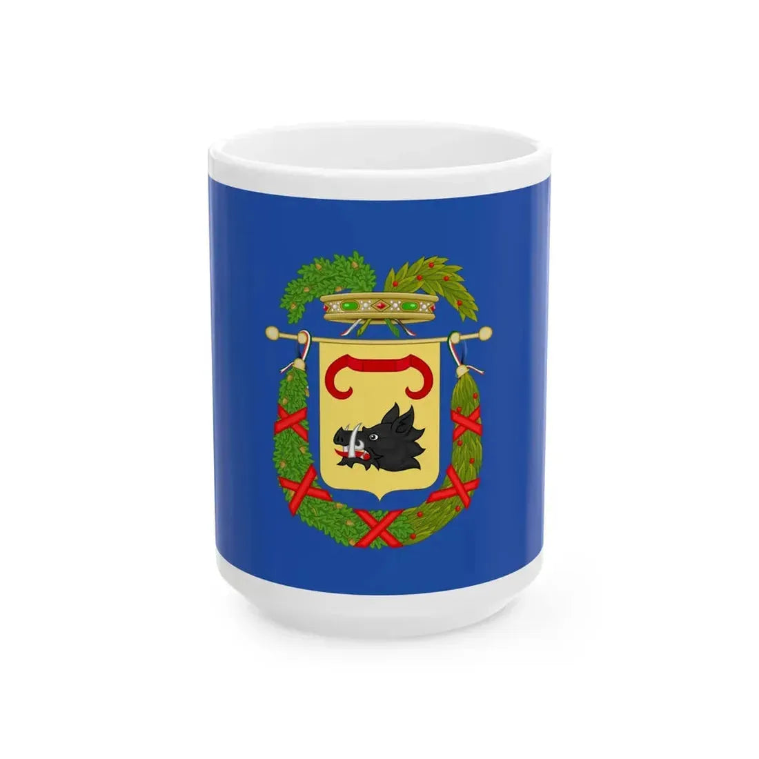 This White Coffee Mug showcases a unique design inspired by the Flag of the Province of Chieti, Italy. The emblematic symbolism of this historic province is beautifully rendered in this mug's artwork, offering a delightful fusion of tradition and practicality for daily use. Ideal for history enthusiasts or those with an appreciation for Italian culture, each sip becomes a subtle reminder of the rich heritage embedded within this province.