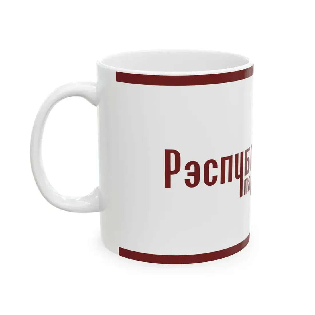 The Flag of the Republican Party of Belarus design on this mug serves as a conversation starter and an interesting addition to any table setting. Whether you're a history enthusiast, a collector of political memorabilia, or simply someone who appreciates unique designs, this mug is sure to catch your eye. It makes a thoughtful gift for friends or family with ties to Belarus or those with an affinity for the country's culture and history.