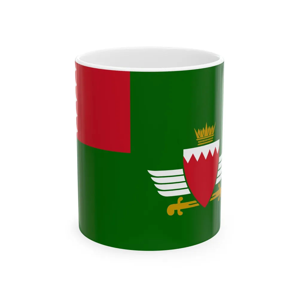 The Flag of the Royal Bahraini Army adorns this white coffee mug, offering a unique blend of military history and everyday use. The design features the national colors of Bahrain – red, white, and black – along with the distinctive Royal Bahraini Army emblem, symbolizing the courage and resilience of the armed forces. This mug serves as an excellent reminder of Bahrain's rich military heritage and makes for a thoughtful gift for history enthusiasts, expatriates living in or with ties to Bahrain, or those interested in Middle Eastern culture.
