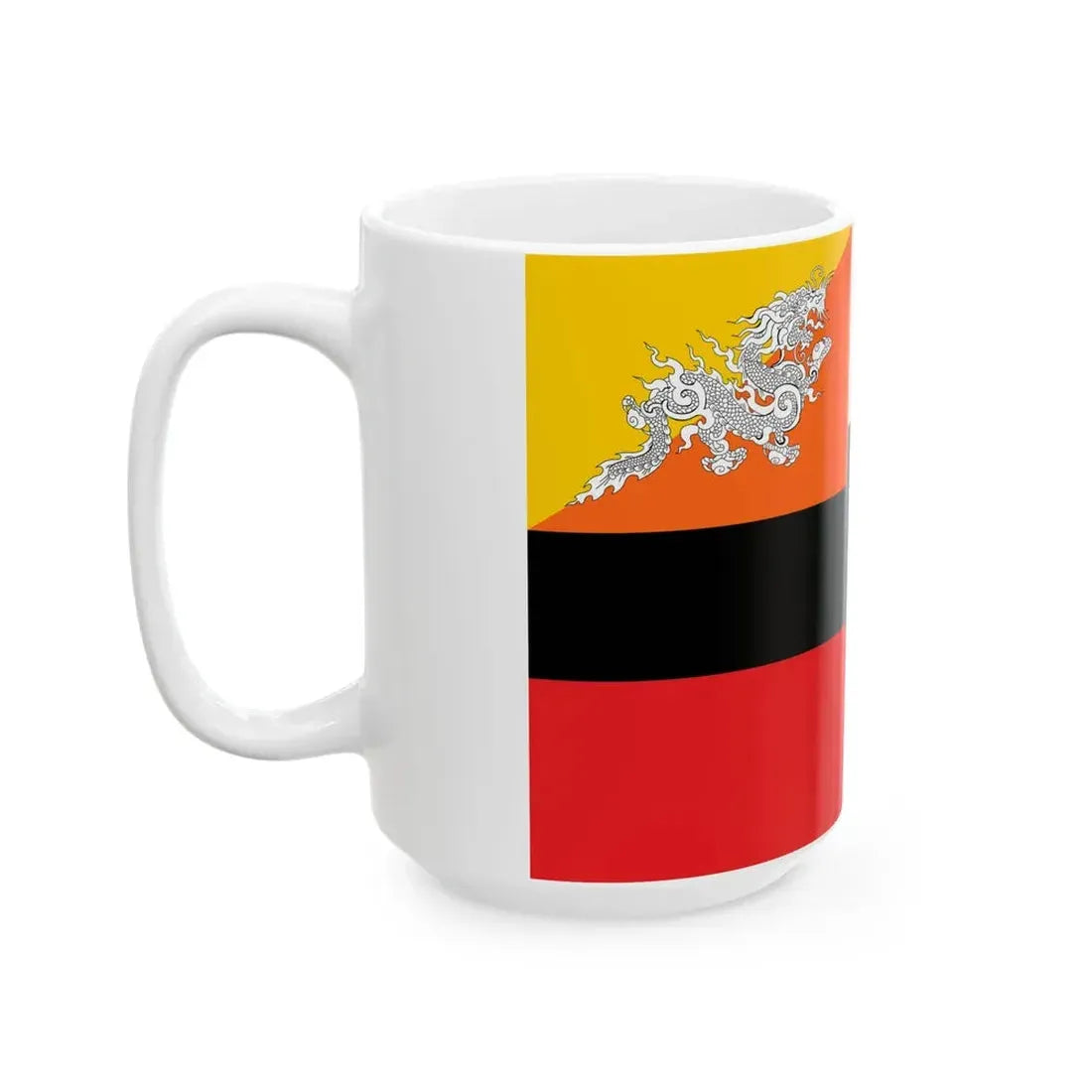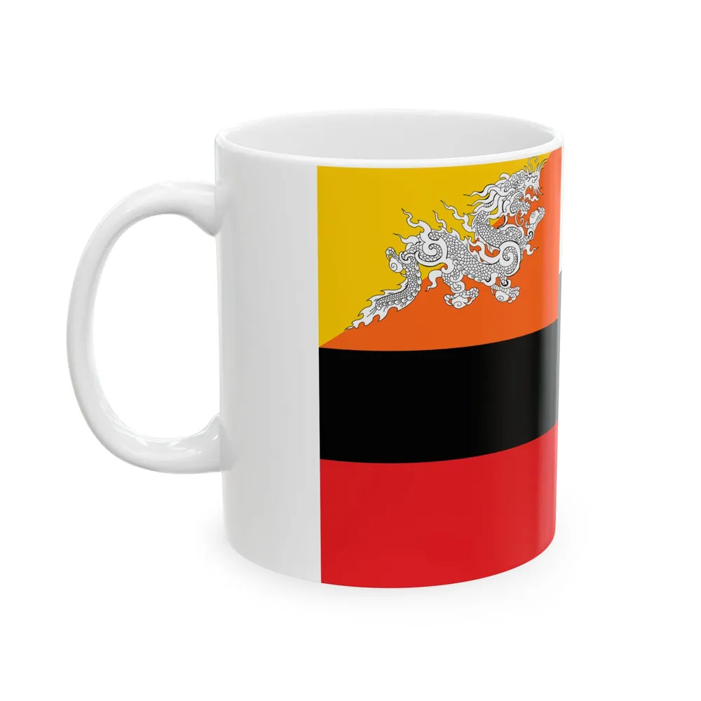 The artwork on this mug is intricately detailed, capturing the essence of the flag's design beautifully. Whether you're sipping your morning coffee or enjoying a quiet evening tea, this mug adds a touch of authentic Bhutanese charm to your daily routine. It makes an excellent gift for travel enthusiasts, history buffs, or anyone who values cultural artifacts. Its construction ensures it withstands the test of time, making it a long-lasting addition to your collection.