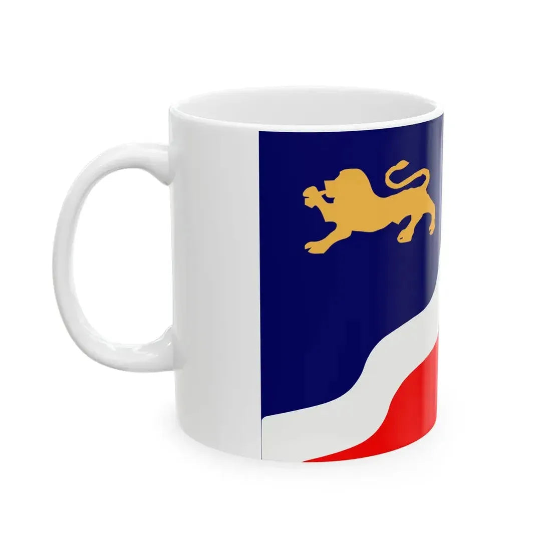 This White Coffee Mug showcases a captivating design inspired by the Flag of the United Republic of Kivu (Congo). The flag's vibrant symbols, including the yellow five-pointed star on a blue field, represent unity and hope within the region. The mug is an exceptional conversation starter for those who hold an interest in Congolese history or geography. Its design also serves as a testament to the unique cultural heritage of Kivu, making it perfect for anyone who appreciates unique and cool drinkware.