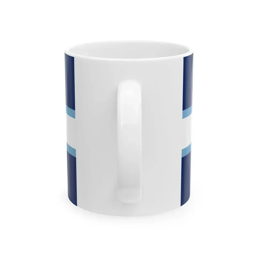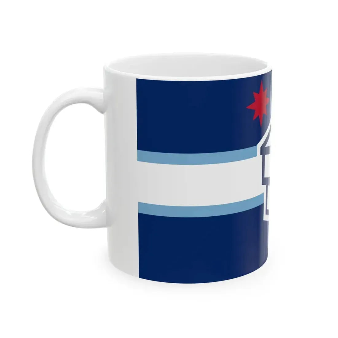 This white coffee mug showcases a distinctive design that pays tribute to the flag of Toledo, Ohio in the year 2025, assuming a future United States context. The design, tastefully incorporated on the mug, illustrates the symbolic representation and colors of the Toledo flag, enhancing your daily beverage experience with a touch of local pride. Whether you're a native Toledoan, an admirer of Ohio history, or someone intrigued by future city flags, this mug is an engaging conversation starter that adds charm to your kitchenware collection.