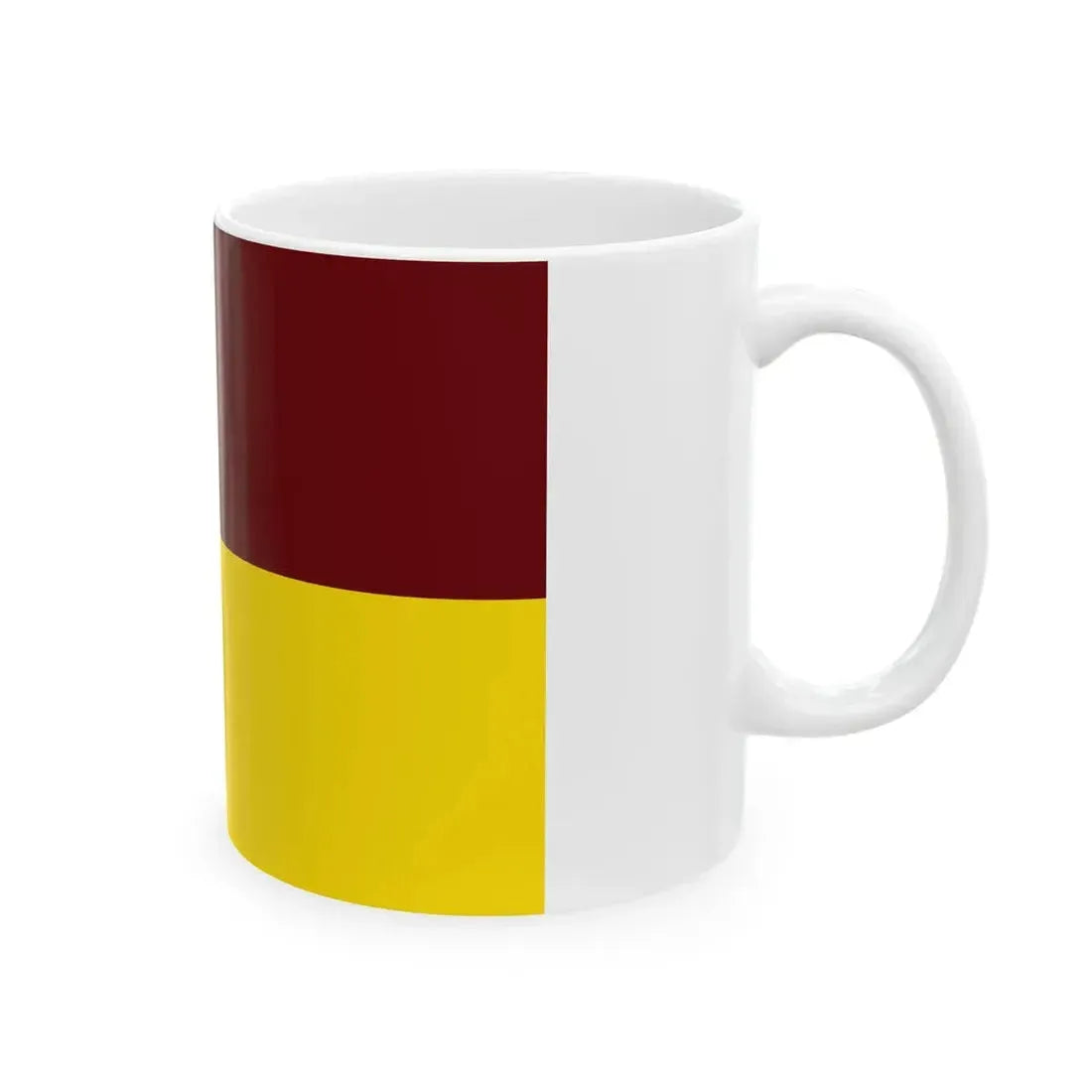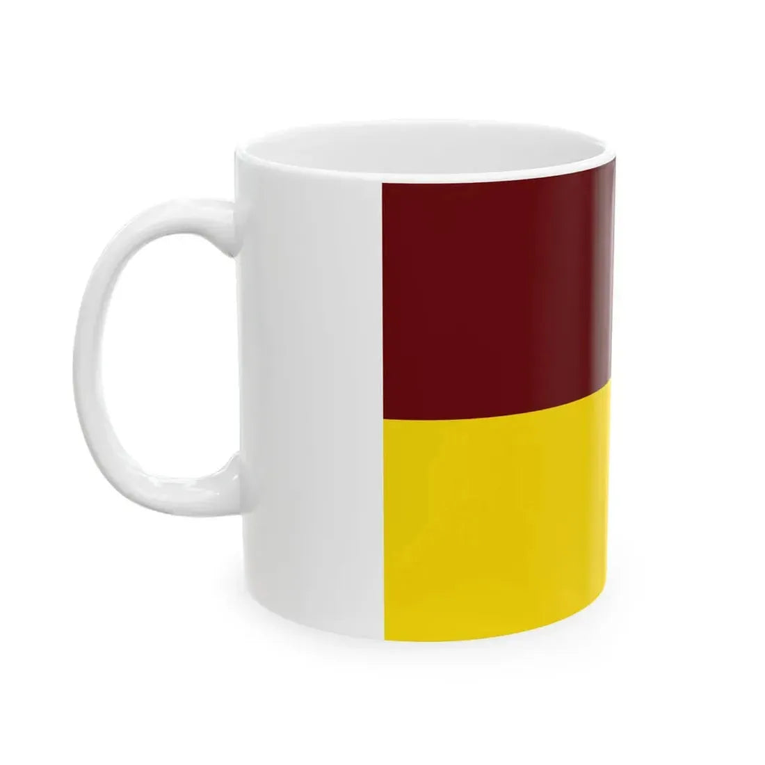 The "Flag of Tolima (Colombia) White Coffee Mug" is a unique piece of drinkware that showcases the flag of the Colombian department of Tolima. This flag, adopted in 1973, features three horizontal stripes of yellow, blue, and red, with a white square at the hoist bearing the national coat of arms. The design on this mug serves as a symbolic representation of the region's heritage and patriotism.