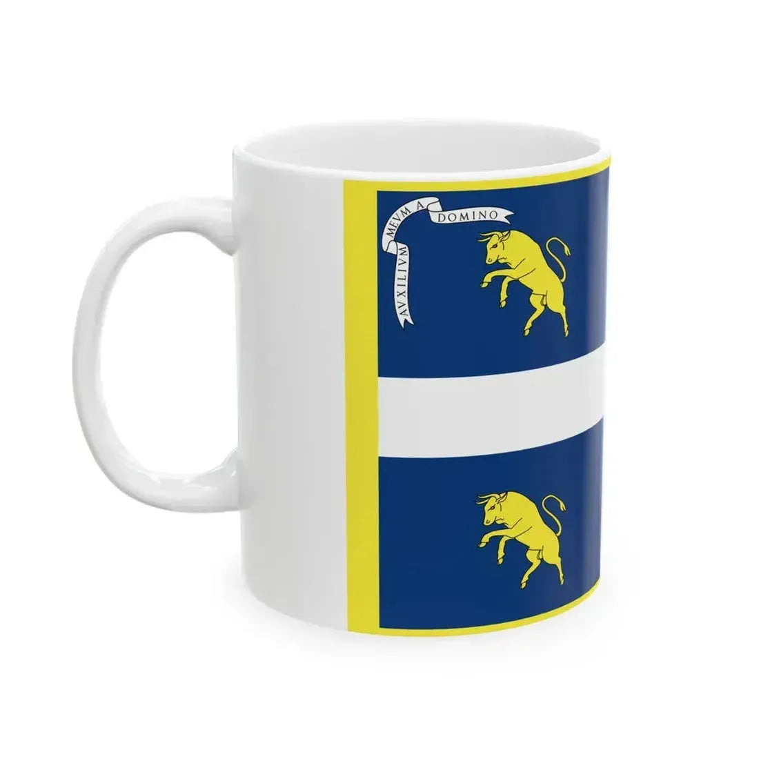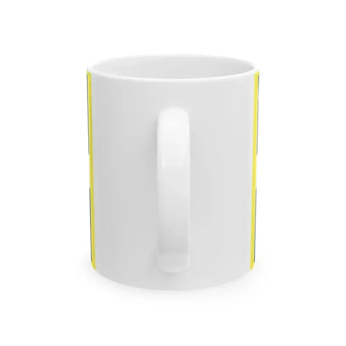 This White Coffee Mug showcases a design inspired by the Flag of Turin, Italy's historic capital city. The design reproduces the flag's vibrant colors and symbolic elements, including the white background, the red saltire (a cross), and the yellow Subalpine eagle. This unique coffee mug is perfect for anyone who appreciates unique and cool drinkware, especially those with an interest in Italian history or admirers of Turin's rich heritage.