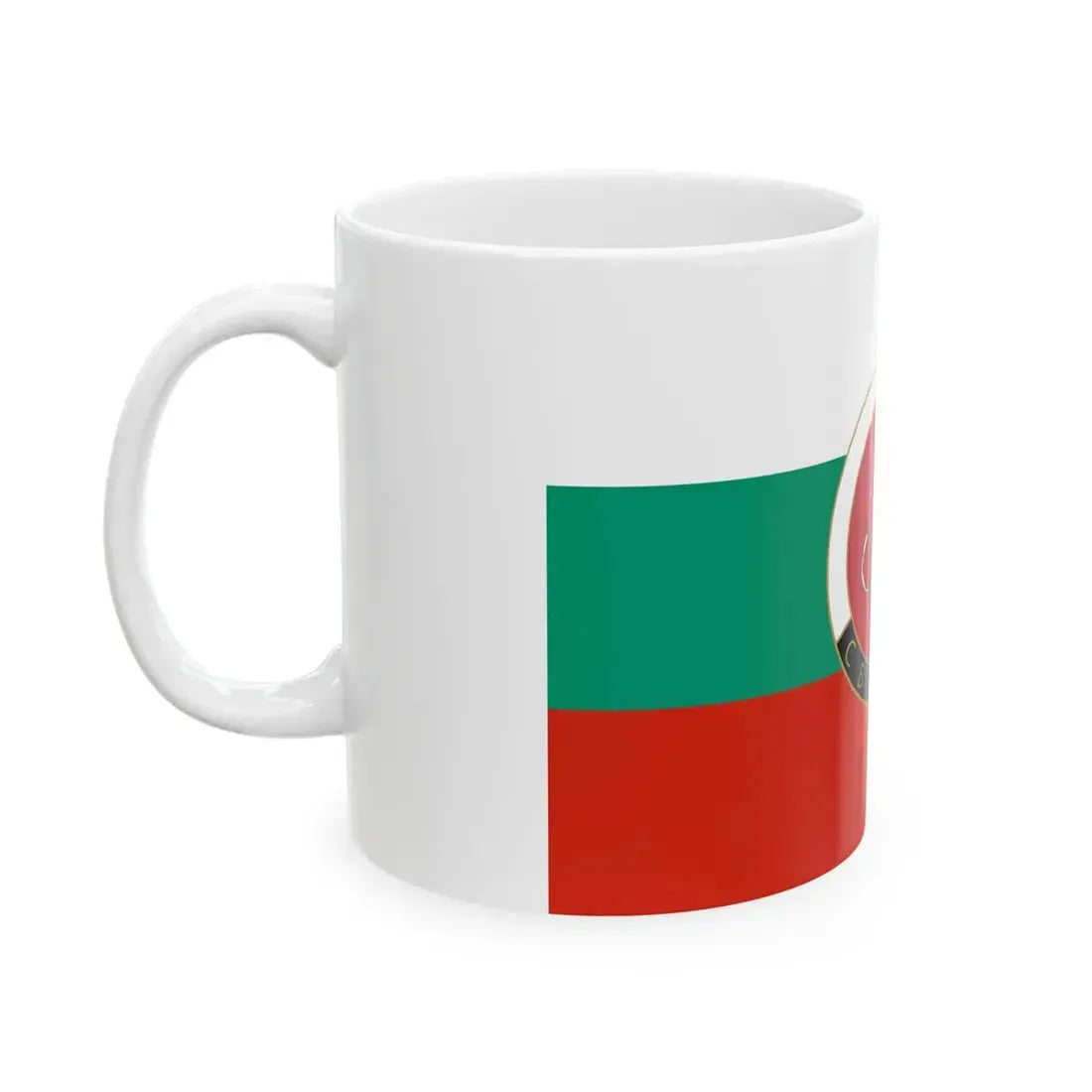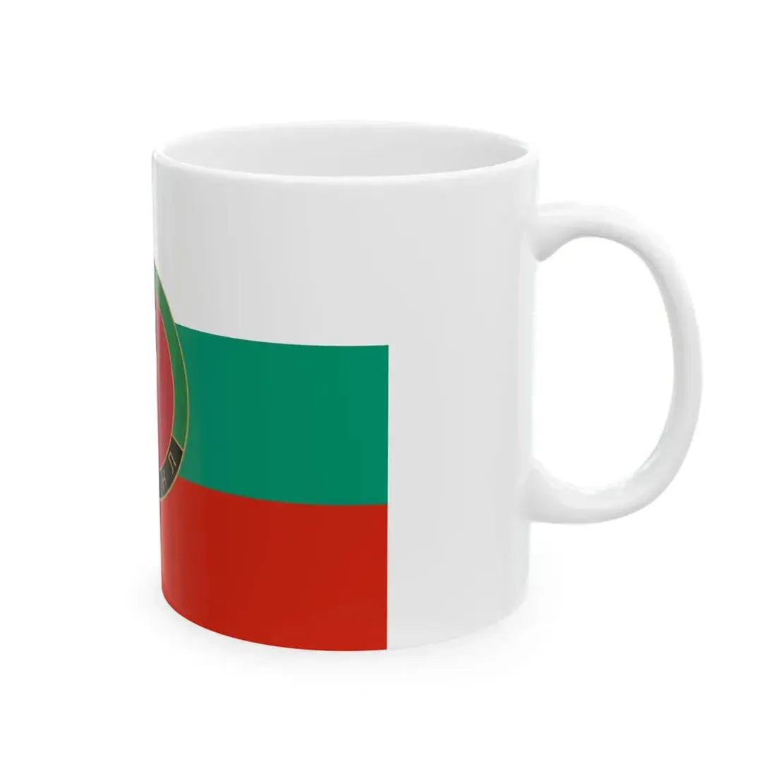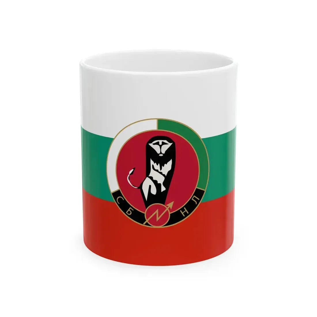 The Flag of Union of Bulgarian National Legions 1930 design on this white ceramic mug adds a touch of historic appeal to your daily beverage-drinking routine. Whether you're sipping morning coffee or enjoying an evening tea, this distinctive mug will serve as a constant reminder of the rich history and culture of Bulgaria. Perfect for anyone who appreciates unique and cool drinkware.