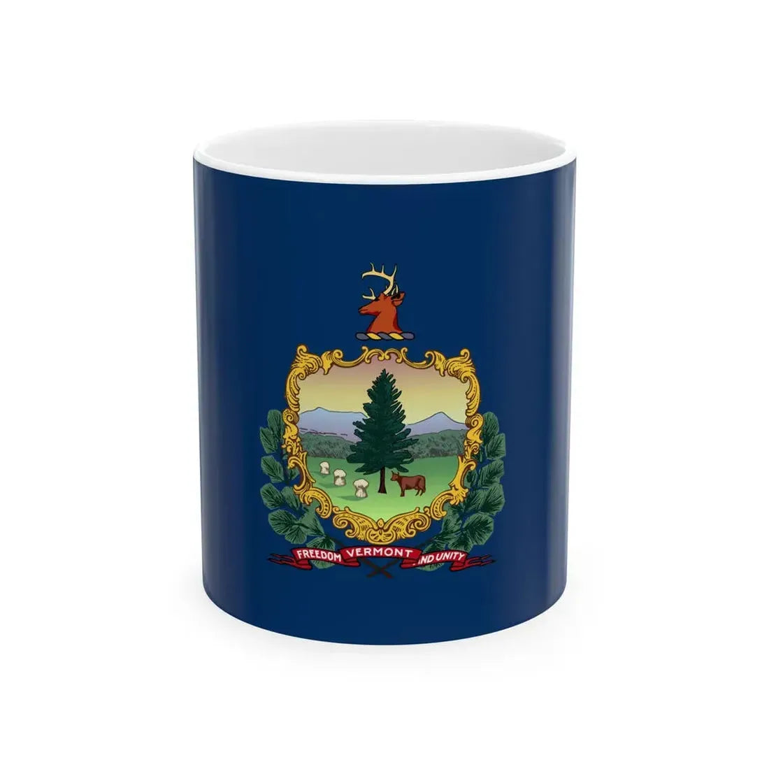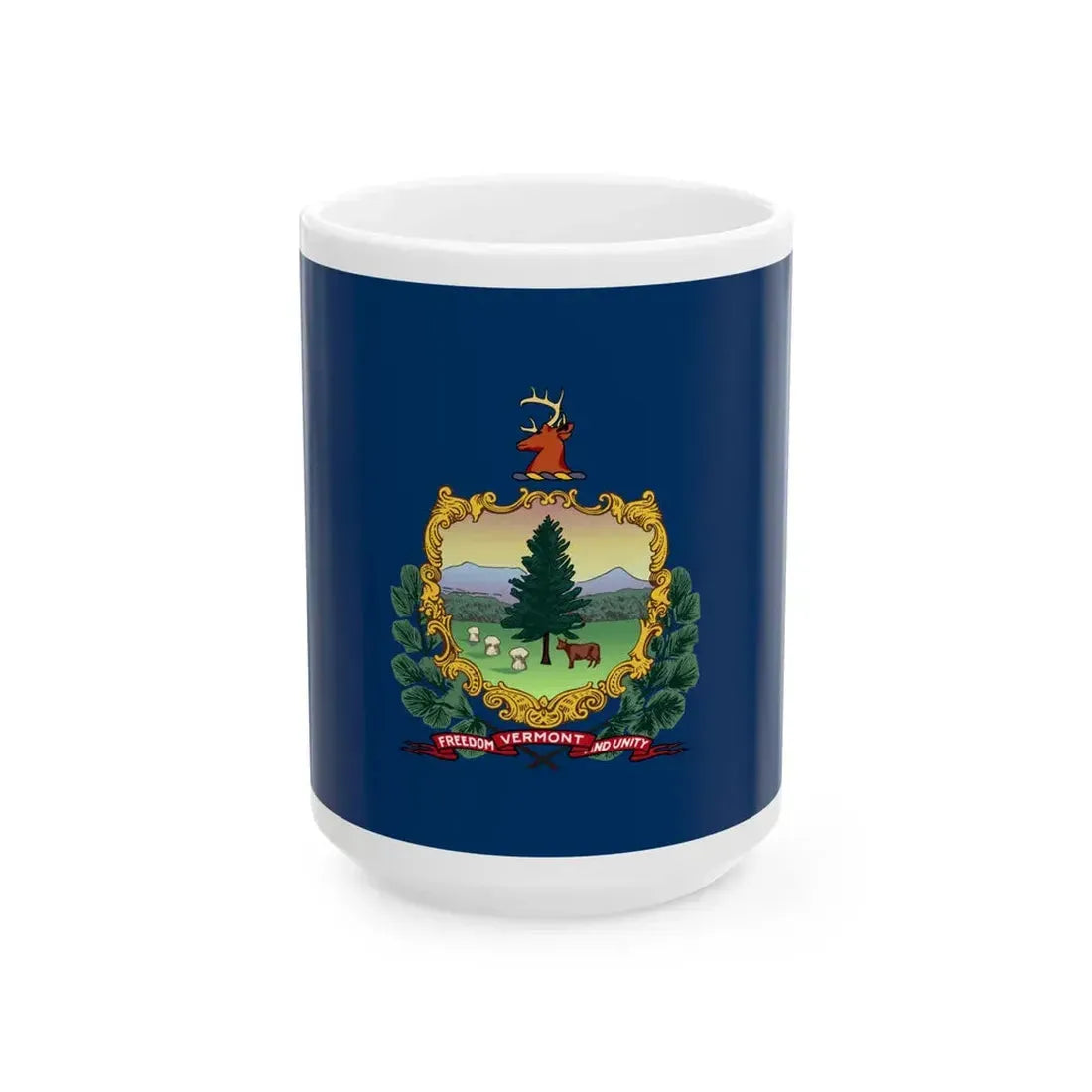 The Flag of Vermont's design, with its simple yet meaningful components, translates beautifully onto this coffee mug. Perfect for anyone who appreciates unique and cool drinkware, as well as those who value the historical significance of emblems representing their home state or region.