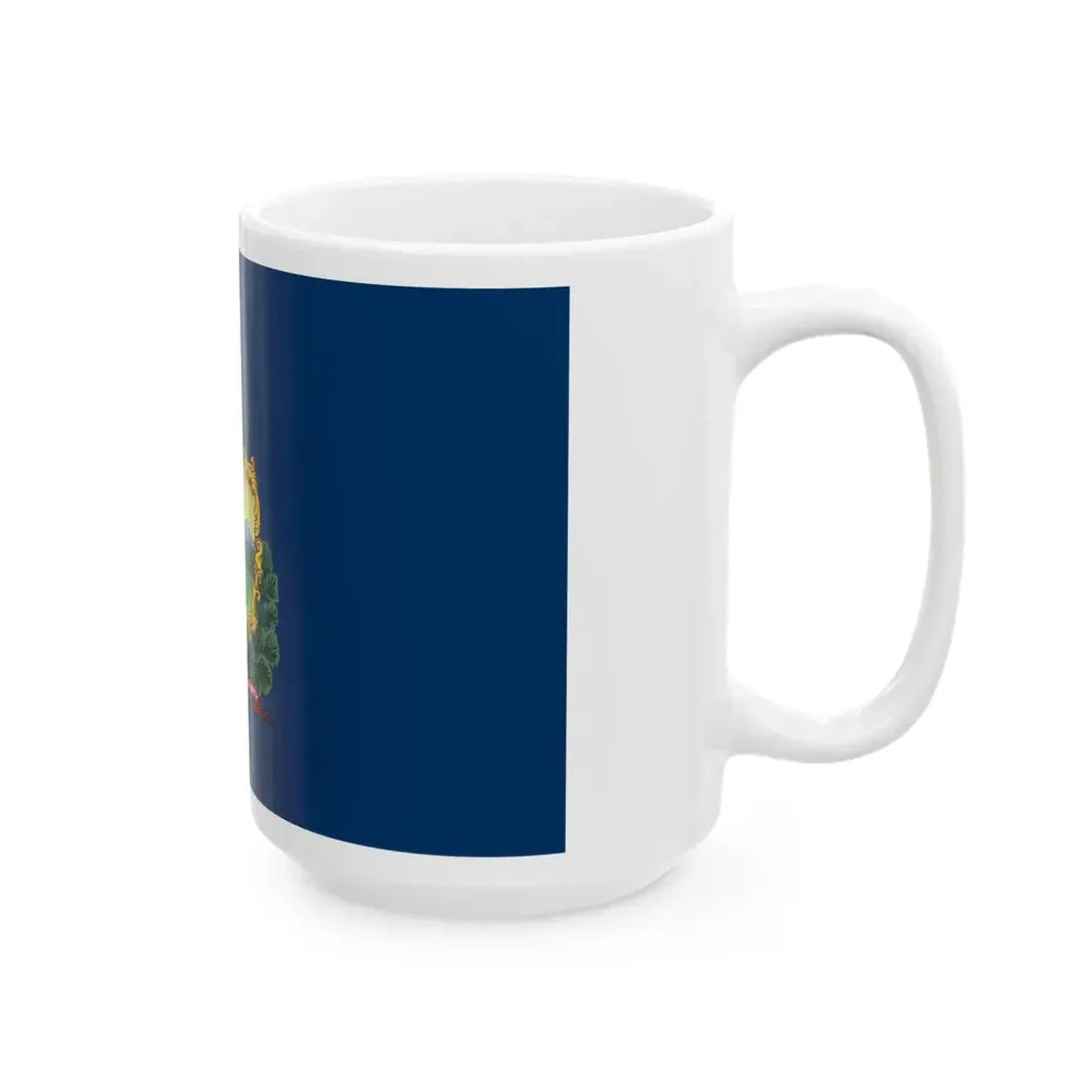 This White Coffee Mug showcases a design inspired by the Flag of Vermont, one of the 50 states in the United States. The flag, adopted in 1923, features three vertical stripes of green, white, and red, with a blue field covering two-thirds of the hoist side where a smaller version of the Vermont Coat of Arms is displayed. This mug makes for an excellent conversation starter among fellow Vermonters or history enthusiasts who appreciate the symbolism behind each element of the flag.