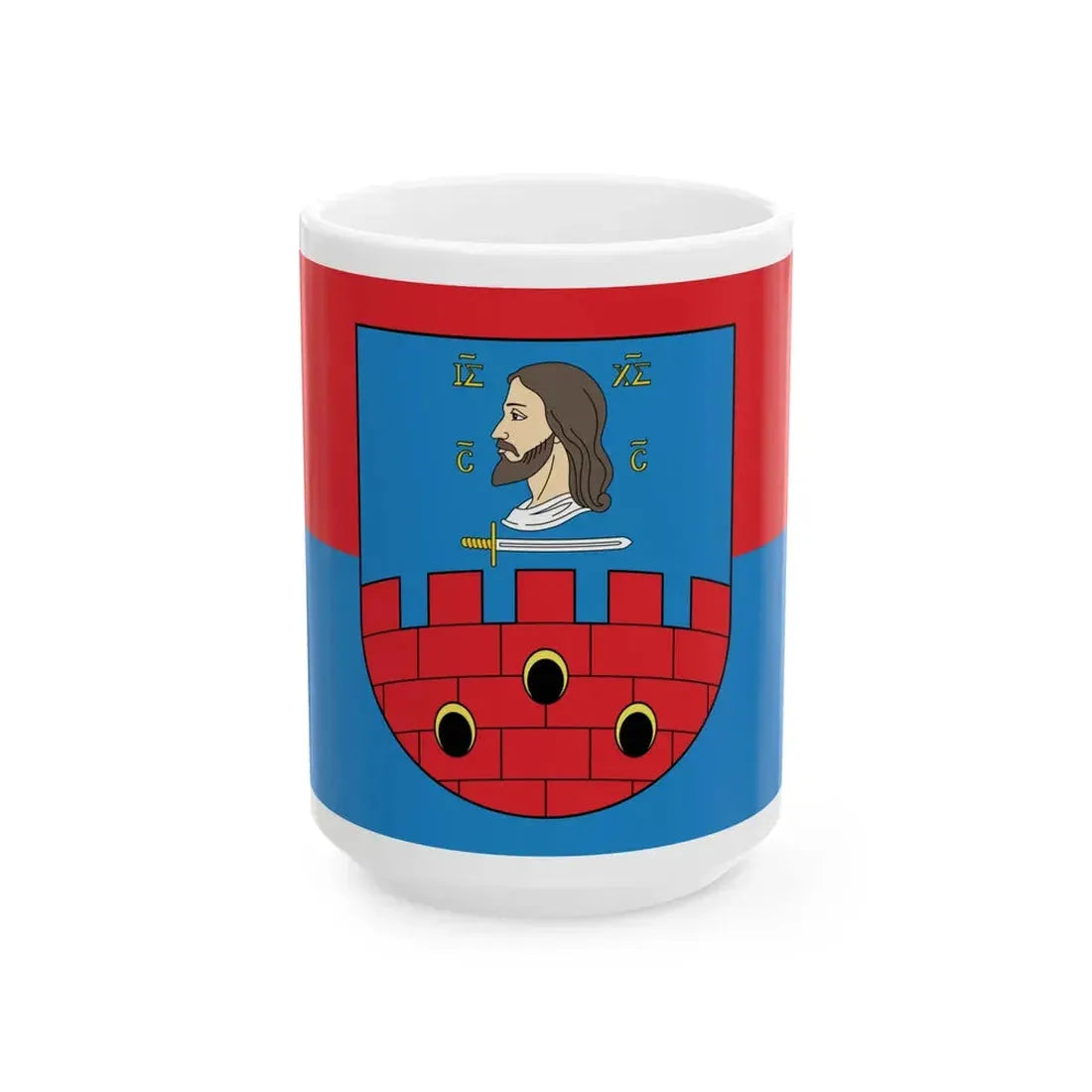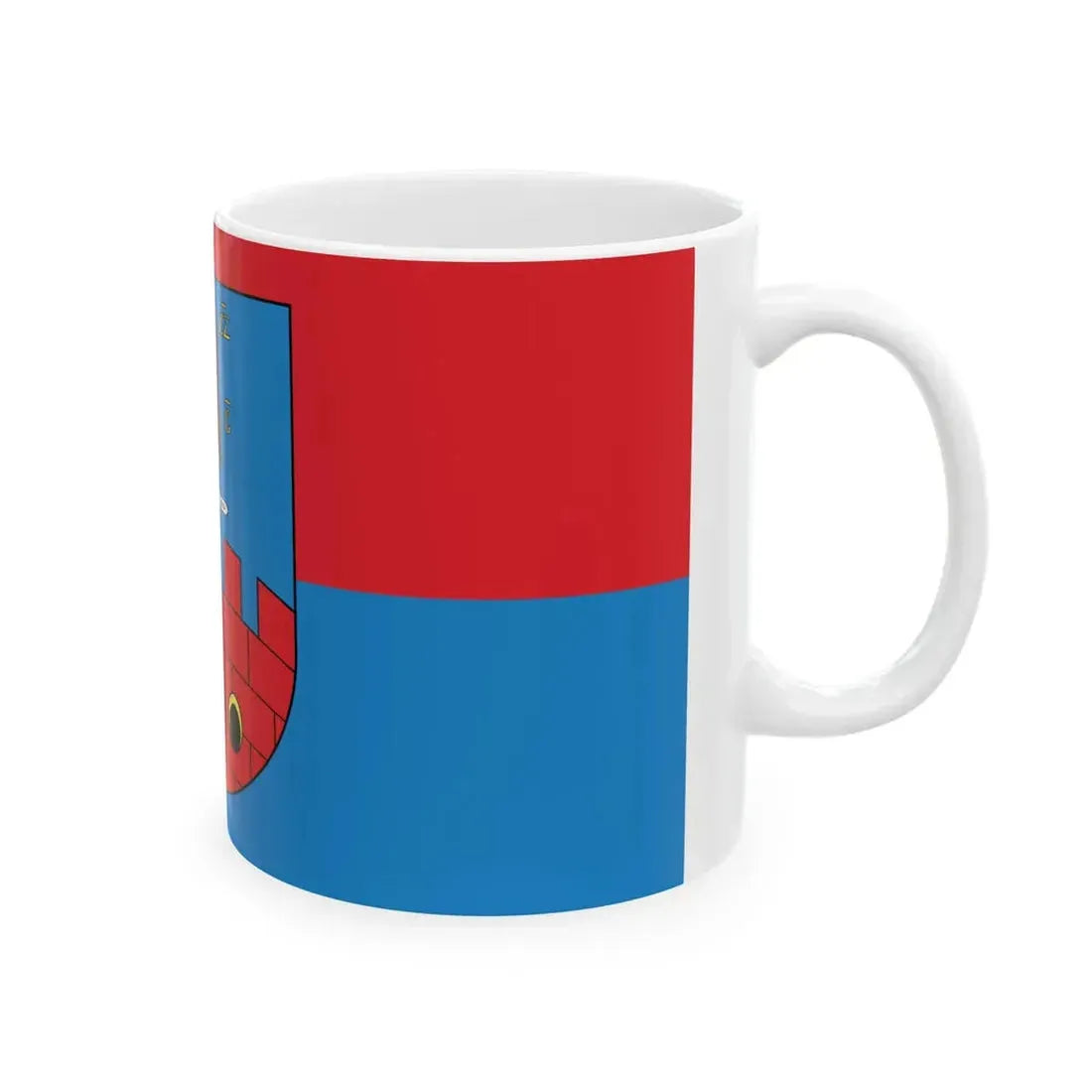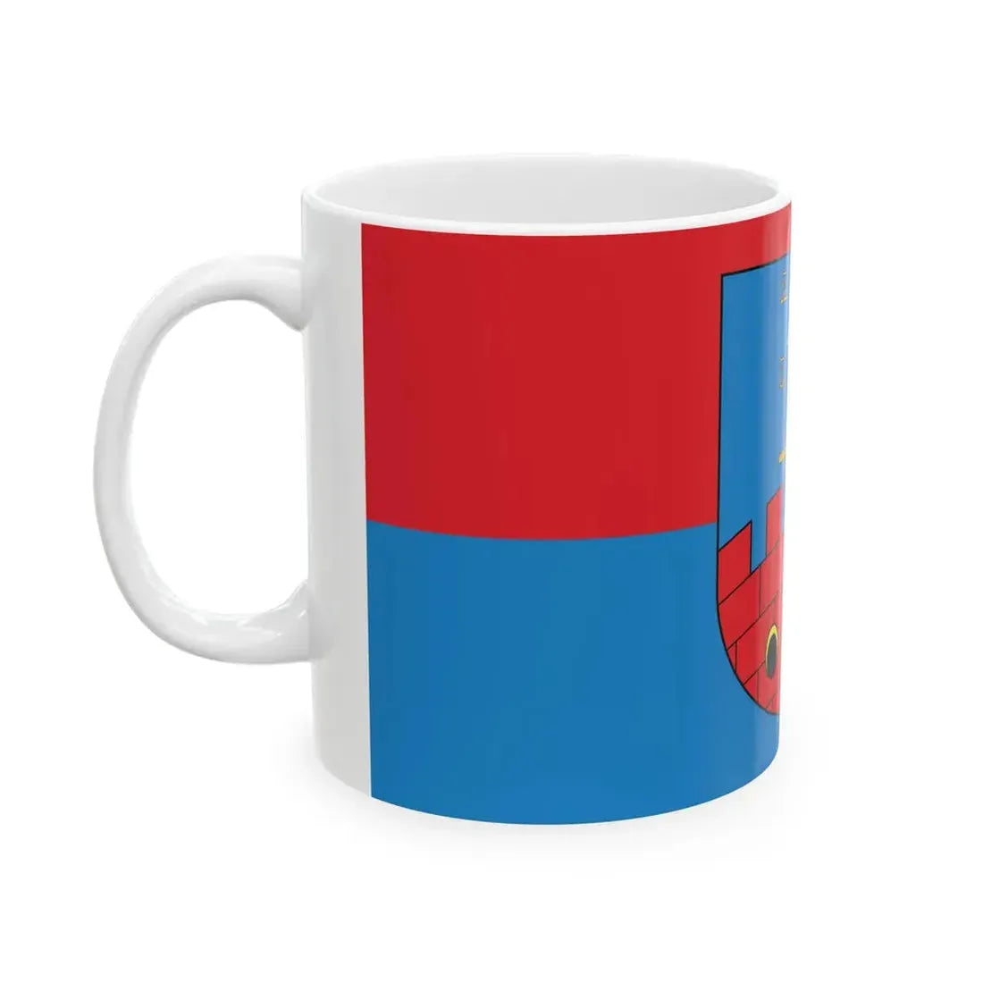 The Flag of Viciebsk Rajon (Belarus) White Coffee Mug is an exquisite piece of art that showcases the regional flag of Viciebsk Rajon in Belarus. This mug features the symbolic design of the flag, including its blue field charged with a white stylized sun and red five-pointed star. The iconic emblem on this mug serves as an excellent representation for those who appreciate Belarusian history and culture. This mug is perfect for anyone who appreciates unique and cool drinkware, and it makes a thoughtful gift for friends or family with ties to Belarus or an interest in Slavic cultures.
