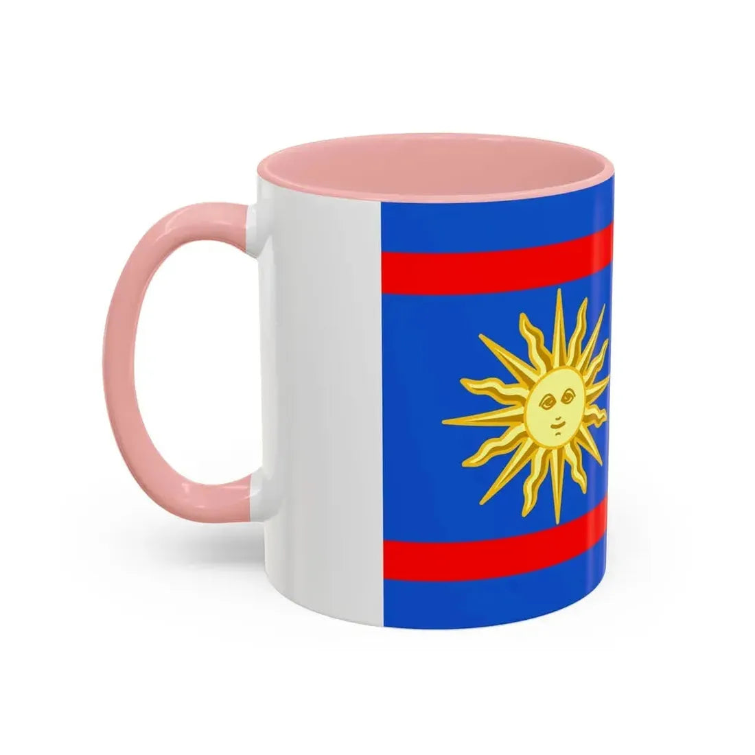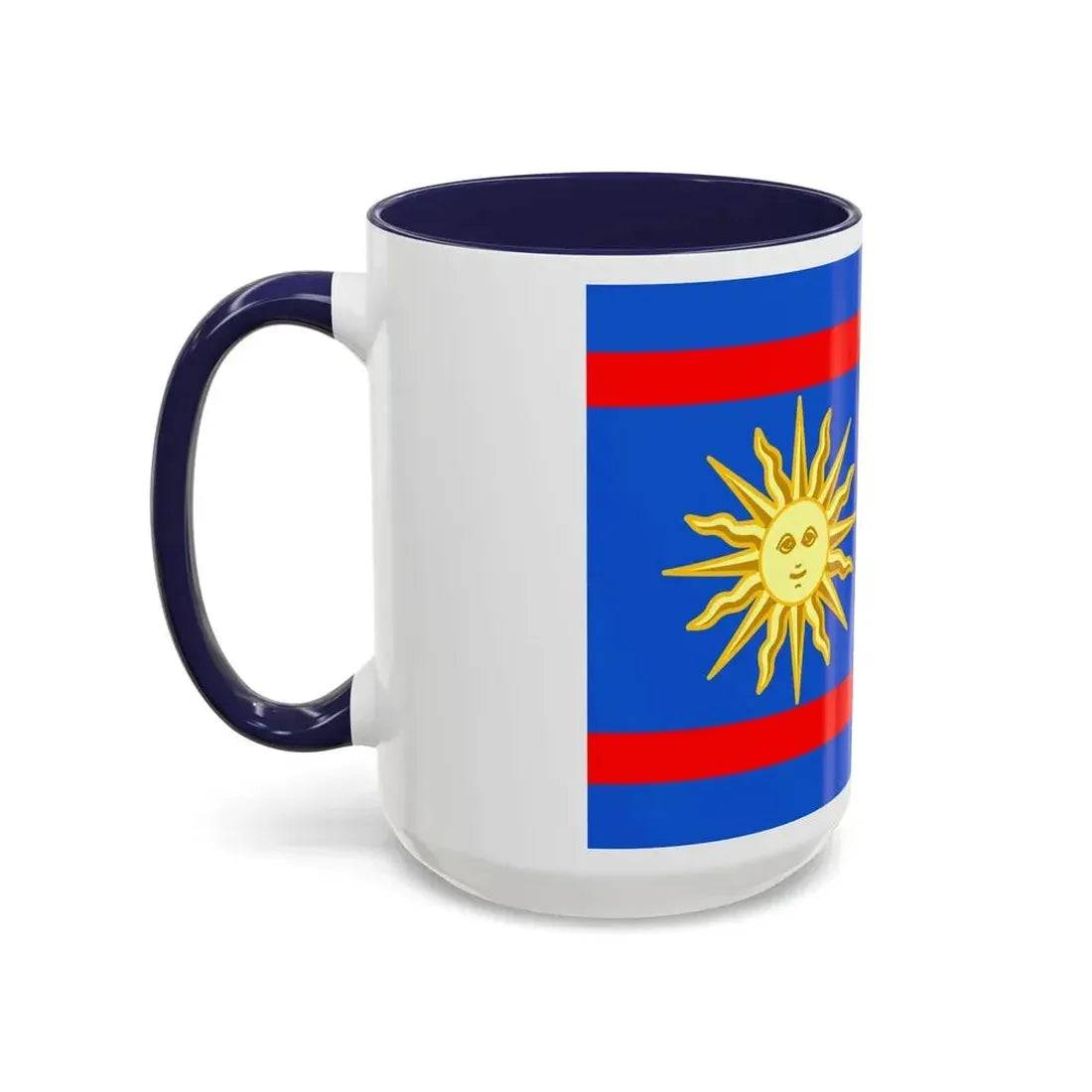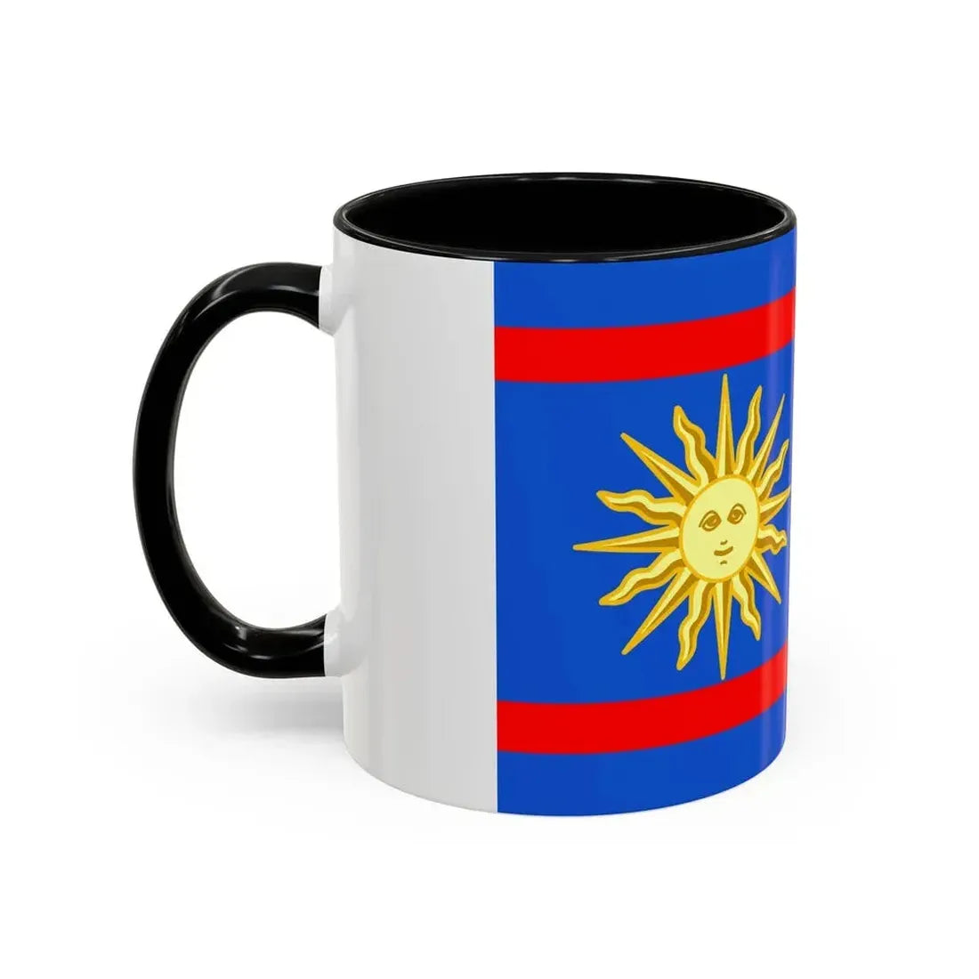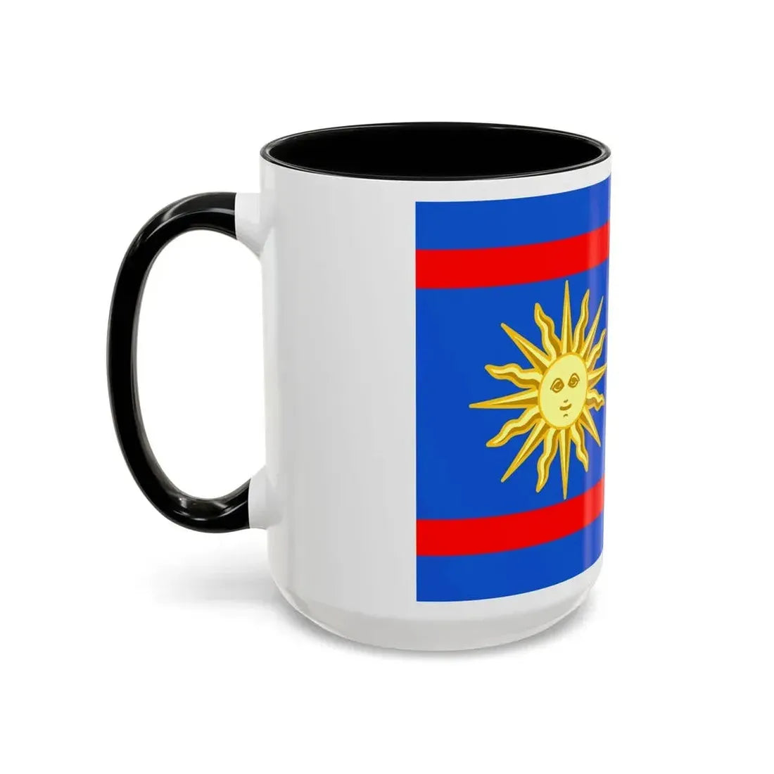 The "Flag of Vinnytsia Oblast Ukraine" Accent Coffee Mug showcases a beautiful representation of one of Ukraine's oblast (regions) flags. This design features the distinctive symbols that characterize the Vinnytsia region's heraldry, providing a unique and captivating artistic expression. The mug serves as a fantastic way to express admiration for Ukrainian culture or to decorate your kitchen with a globally significant symbol.