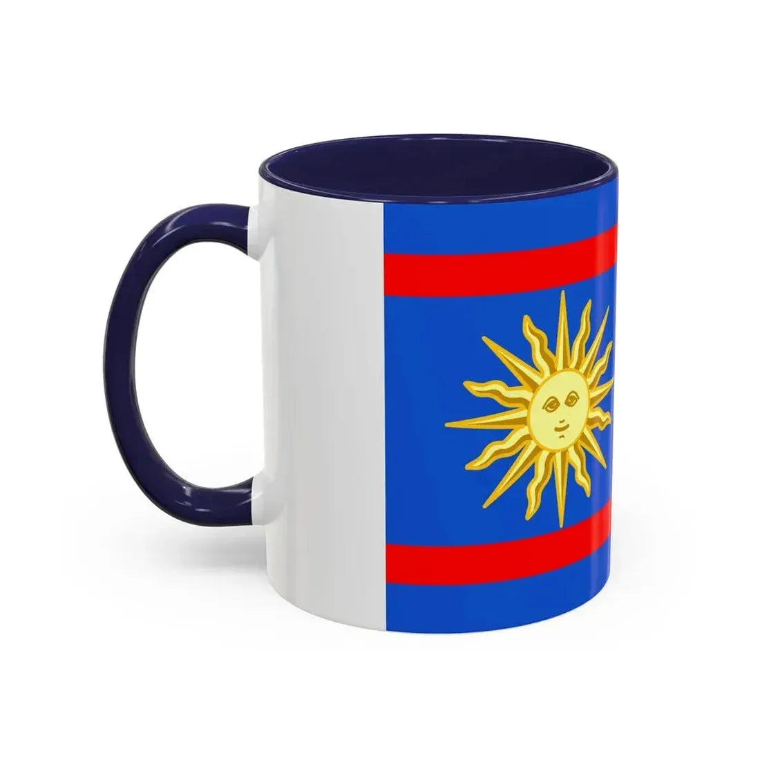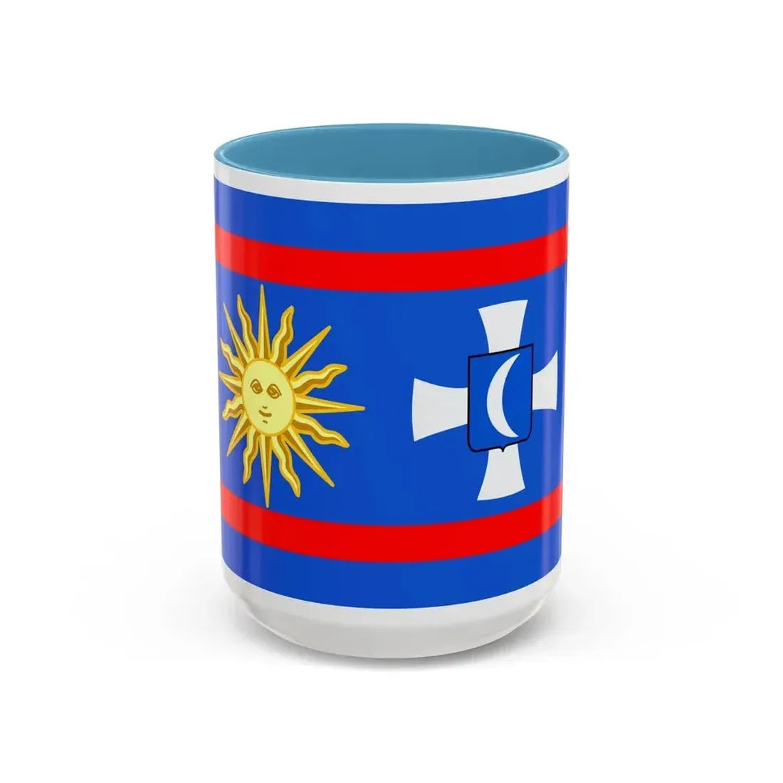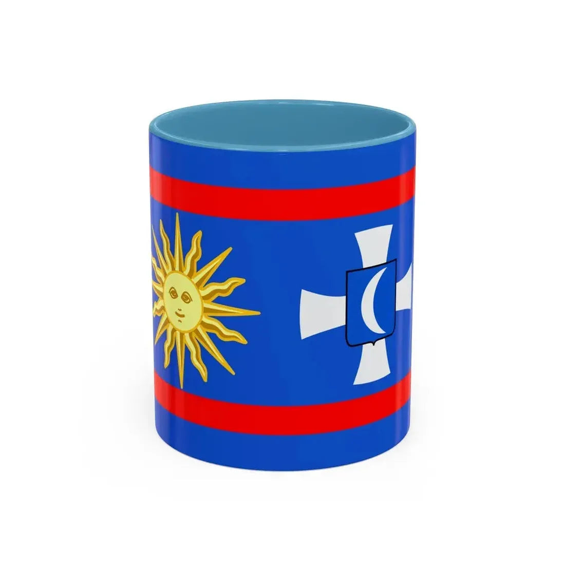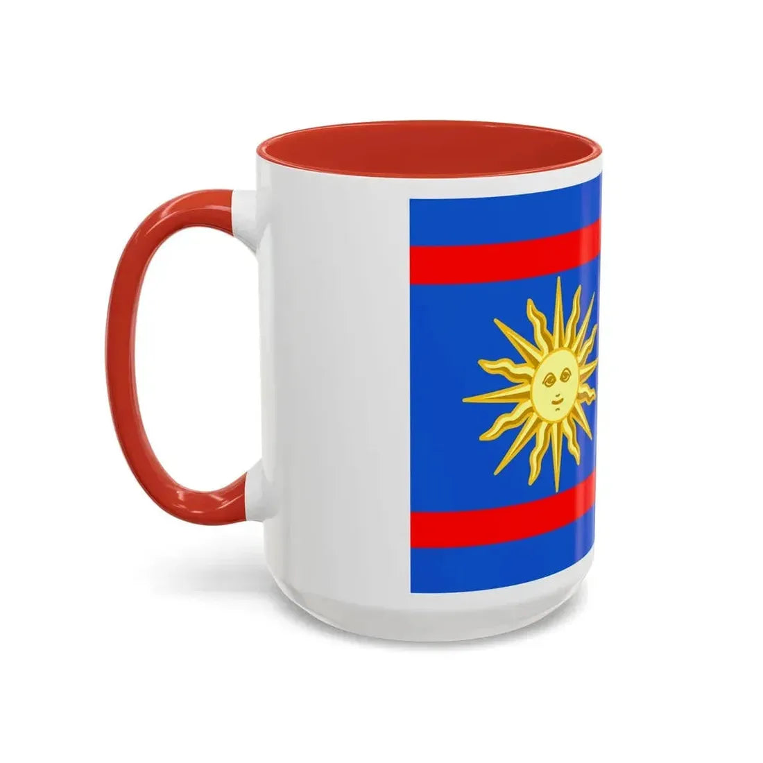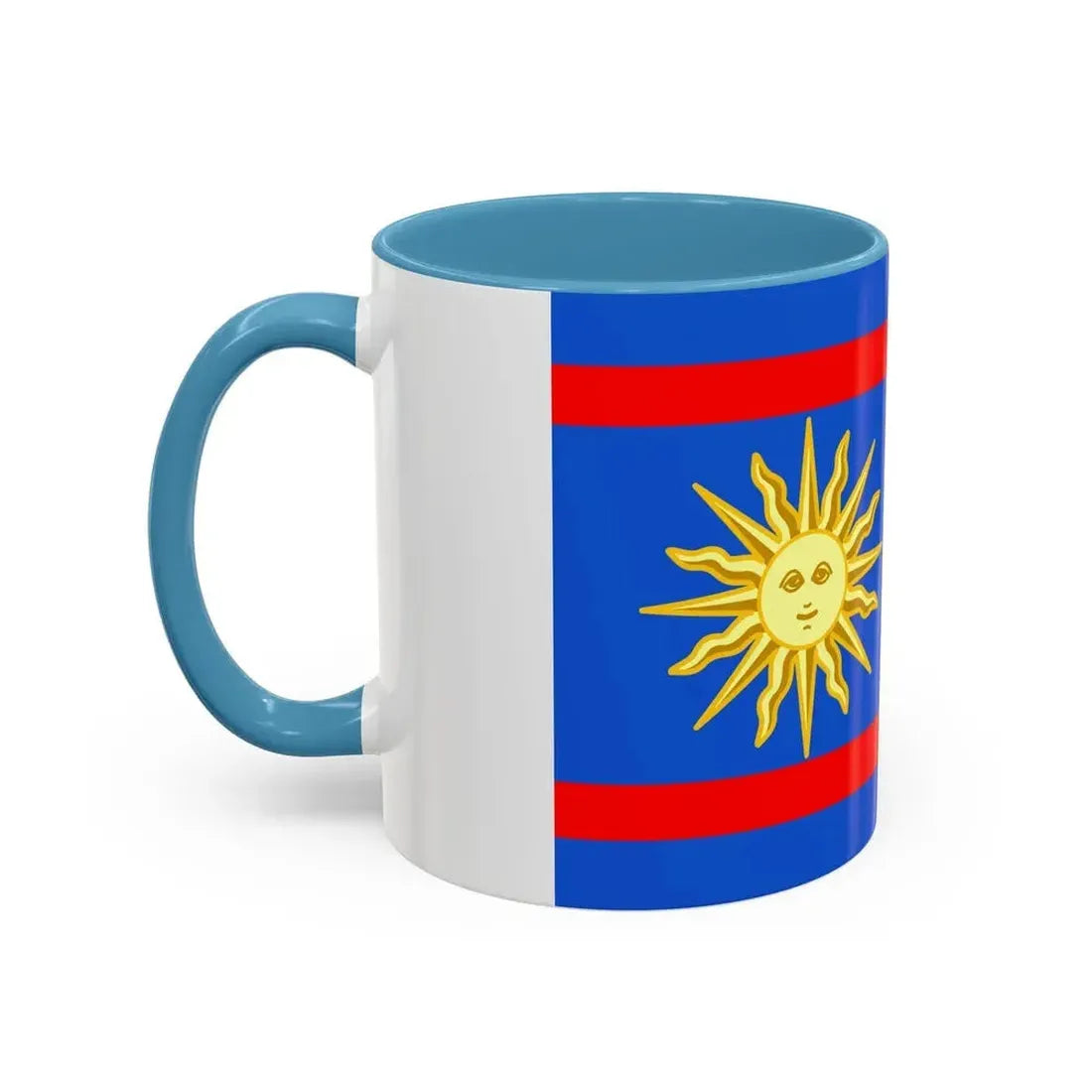 The "Flag of Vinnytsia Oblast Ukraine" Accent Coffee Mug showcases a beautiful representation of one of Ukraine's oblast (regions) flags. This design features the distinctive symbols that characterize the Vinnytsia region's heraldry, providing a unique and captivating artistic expression. The mug serves as a fantastic way to express admiration for Ukrainian culture or to decorate your kitchen with a globally significant symbol.