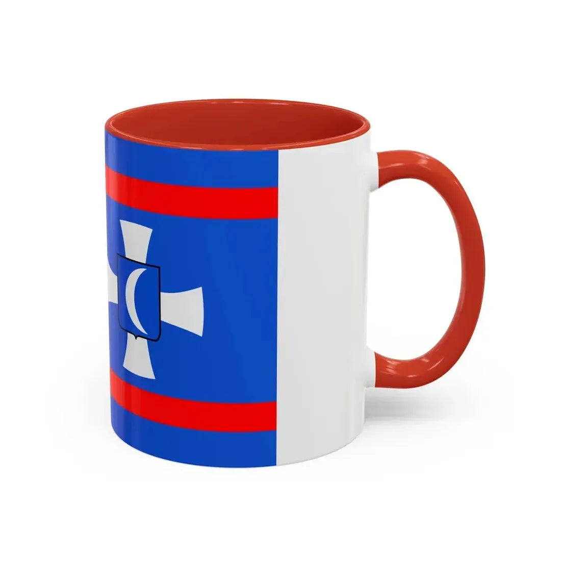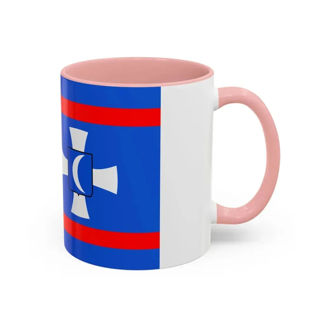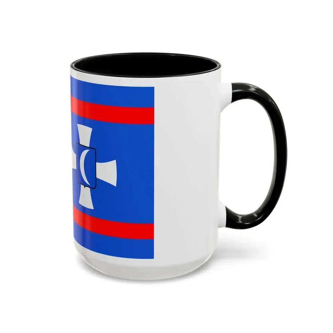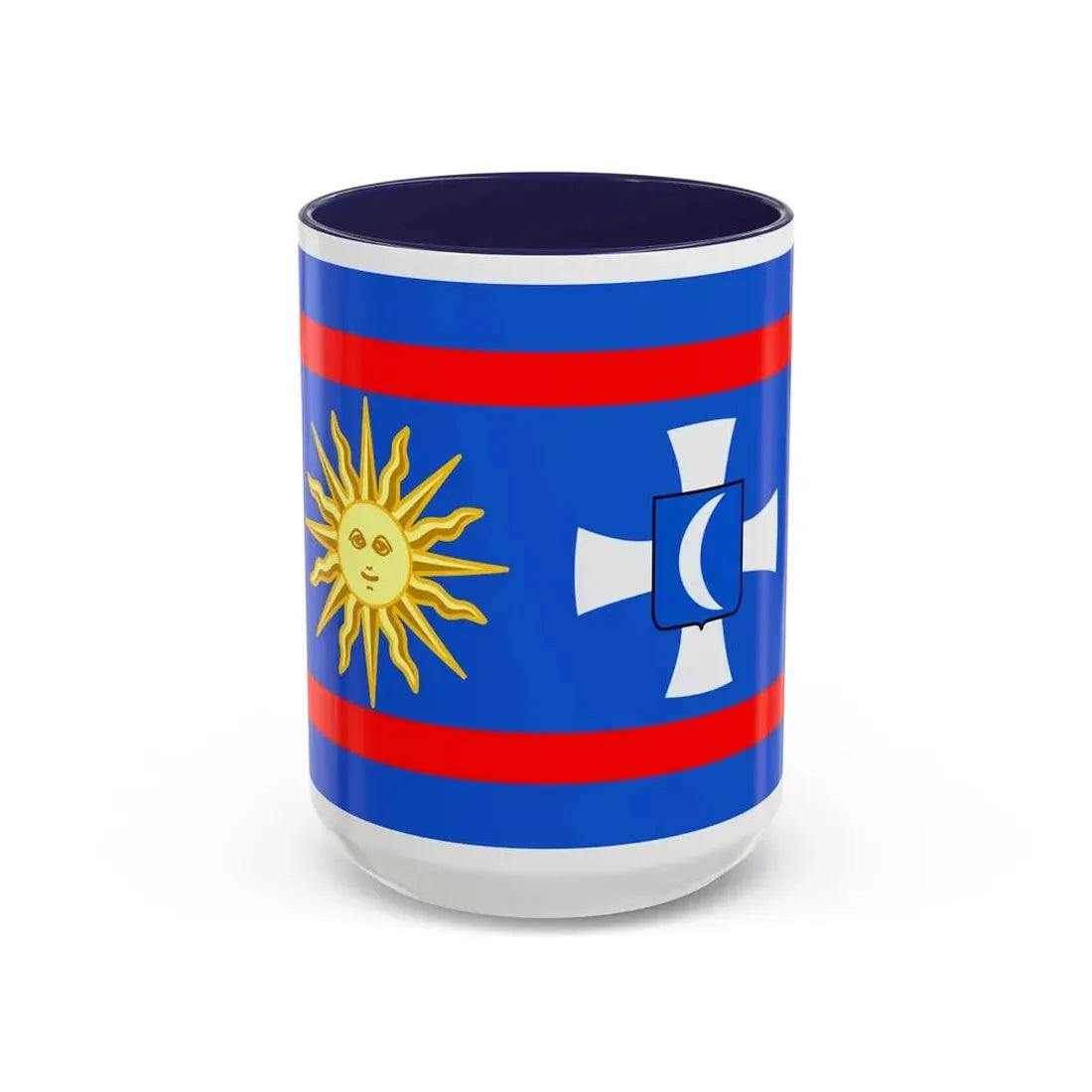 The "Flag of Vinnytsia Oblast Ukraine" Accent Coffee Mug showcases a beautiful representation of one of Ukraine's oblast (regions) flags. This design features the distinctive symbols that characterize the Vinnytsia region's heraldry, providing a unique and captivating artistic expression. The mug serves as a fantastic way to express admiration for Ukrainian culture or to decorate your kitchen with a globally significant symbol.