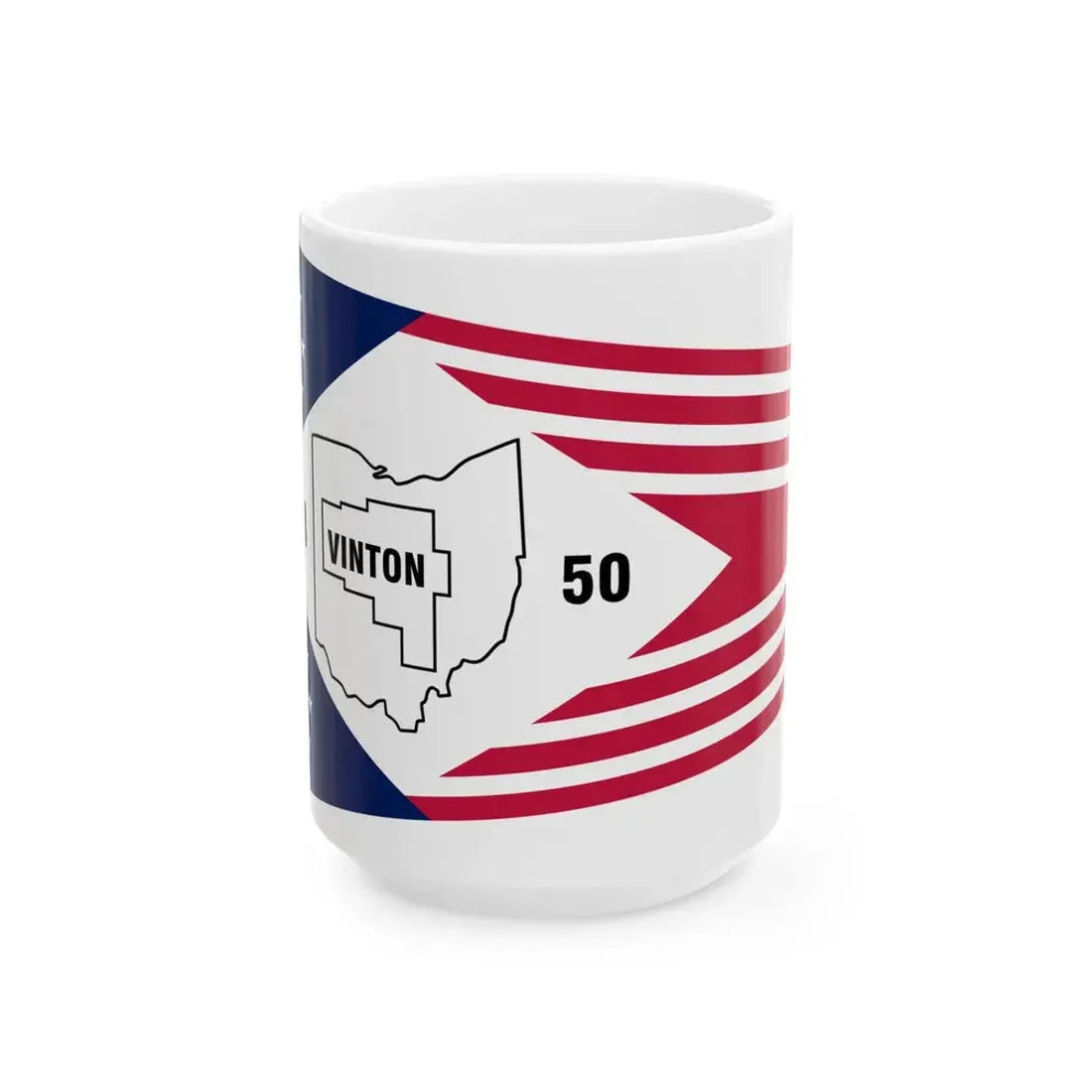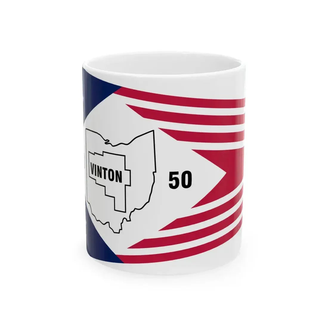 Crafted from ceramic material, this white coffee mug boasts a classic design that elevates any table setting. The intricate artwork on the mug is not only aesthetically pleasing but also serves as a conversation starter about the rich history and charm of Vinton County. The mug's smooth finish and grip make it perfect for enjoying your favorite hot beverage, whether at home or in an office setting. Perfect for anyone who appreciates unique and cool drinkware.