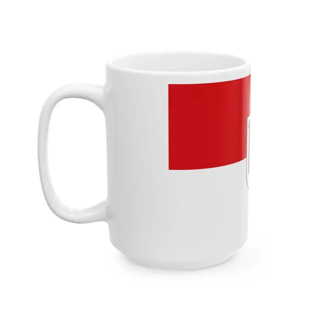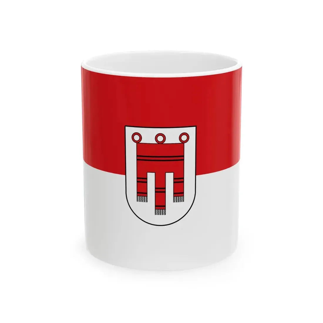 This White Coffee Mug showcases a distinctive design inspired by the Flag of Vorarlberg, one of Austria's nine federal states. The flag, adopted in 1948, is characterized by its white field with a red canton bearing the coat of arms of the county. On this mug, the flag's imagery is artfully rendered, making it a unique and engaging drinkware item for those who appreciate Austria or Vorarlberg specifically.