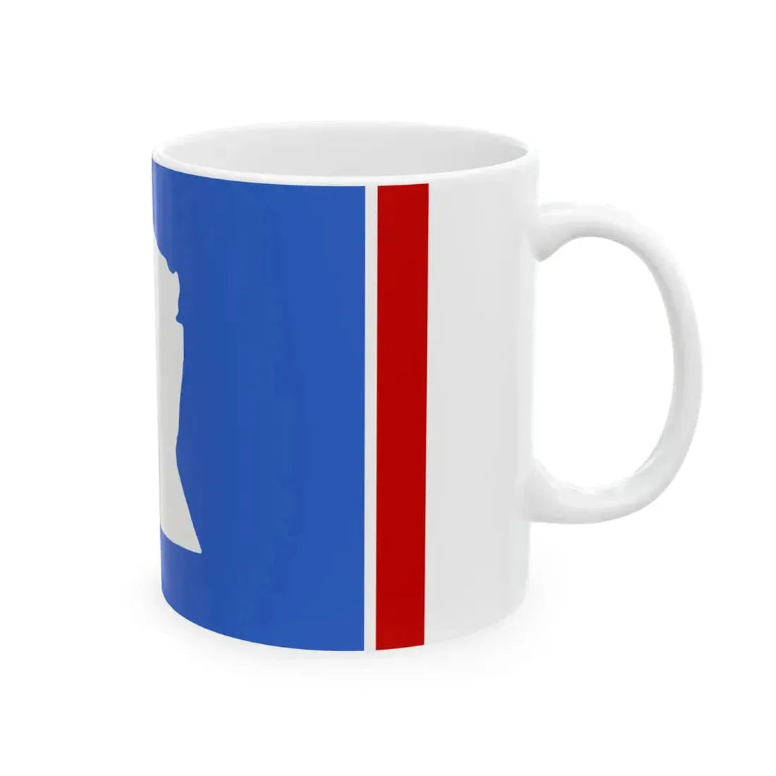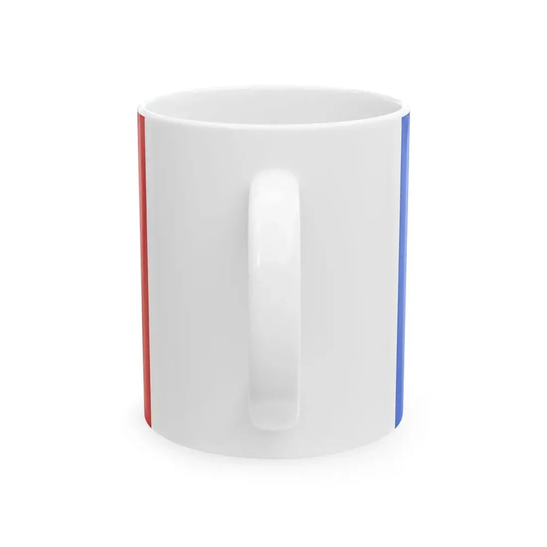 This white coffee mug showcases a unique design inspired by the Flag of Warren County, Tennessee, United States. The flag features three blue stars arranged in an equilateral triangle on a field of white, symbolizing the original counties in the territory of Tennessee. Surrounding the triangle is a red circle with thirteen white stars representing the original thirteen colonies. This mug is perfect for anyone who appreciates unique and cool drinkware, as well as history enthusiasts, or those with a special affinity for Tennessee culture.