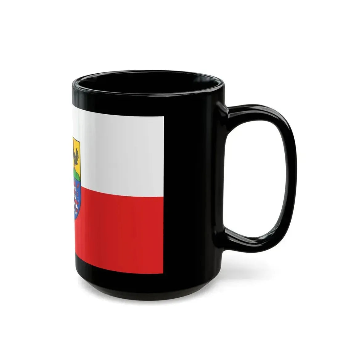 This Black Coffee Mug is a tribute to the Wartburgkreis region of Germany, showcasing its distinctive flag as the central design. The flag, featuring horizontal stripes in white, red, and blue with a gold coat of arms, represents the county's history and traditions. This mug makes an excellent choice for those who appreciate German culture or have connections to this region.