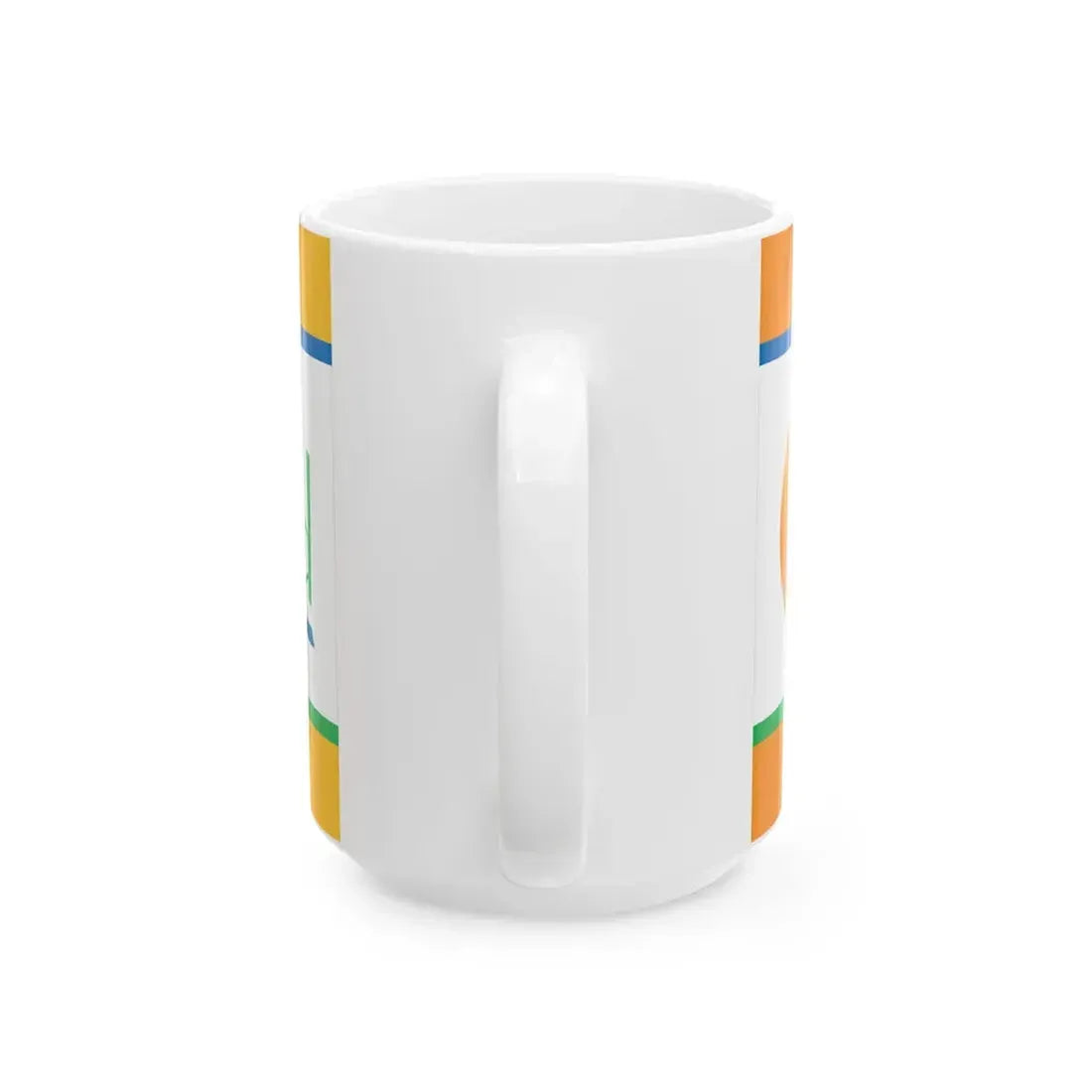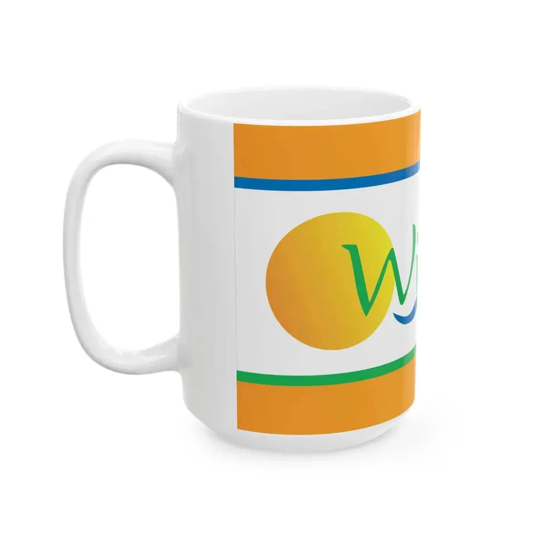 This unique white coffee mug showcases the Flag of Winsted, Minnesota, a testament to its rich history and civic pride. The design features the city's official flag, with its blue field divided into six sections by white stripes, each section representing one of the town's six original settlers. Above the horizontal stripes, you'll find a single star in the canton, symbolizing the state of Minnesota. This striking artwork is perfect for anyone who appreciates unique and cool drinkware, especially Minnesotans or those with an affinity for American city flags.