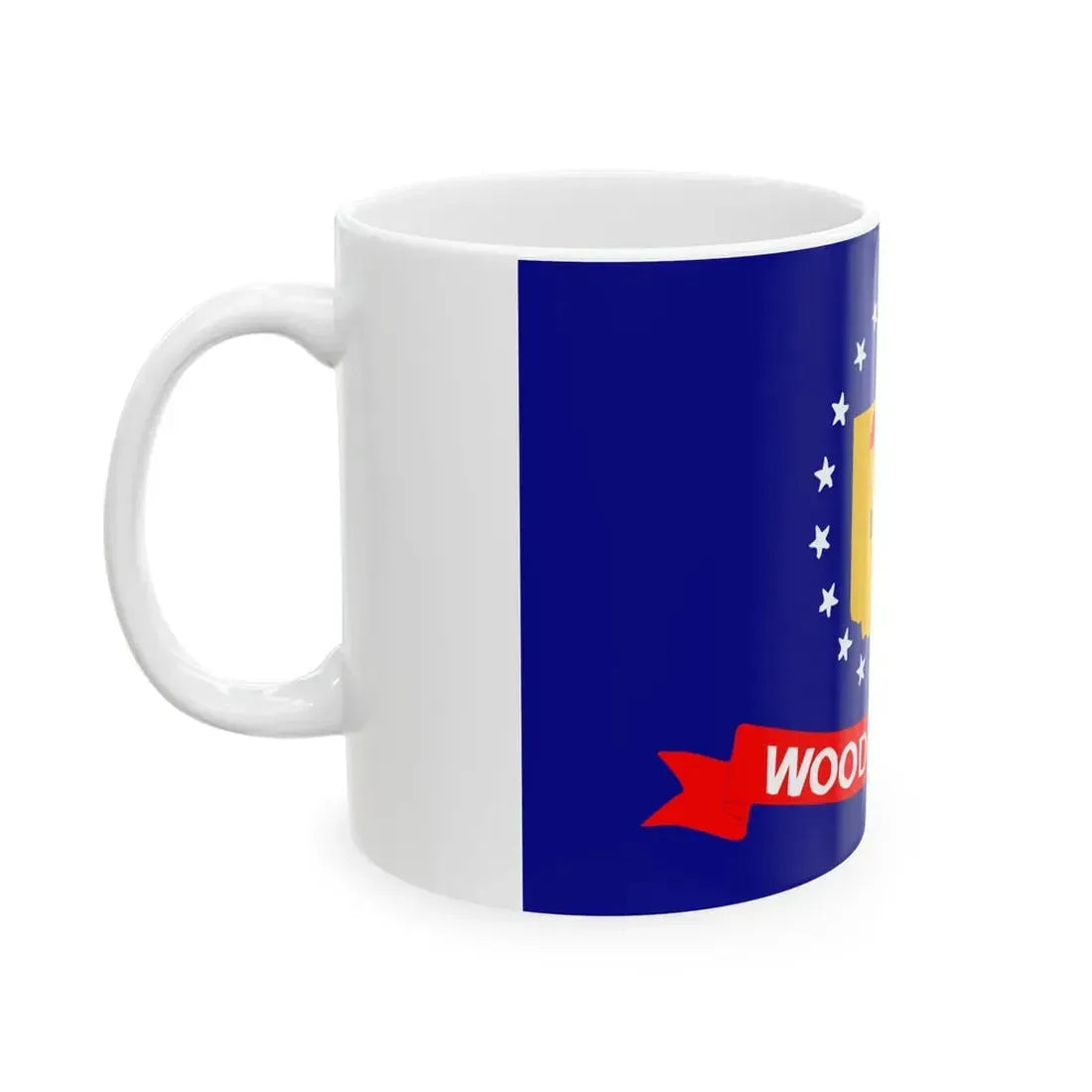 Step into the heartland of America with this Flag of Wood County Ohio white coffee mug. This unique drinkware showcases a vivid representation of the official flag of Wood County, Ohio, United States. The design features the county's distinctive emblem โ€“ the central star and surrounding stripes in red, white, and blue. It is an excellent choice for those who value their American heritage or have connections to Wood County. This mug also makes a thoughtful gift for anyone who appreciates unique and cool drinkware.